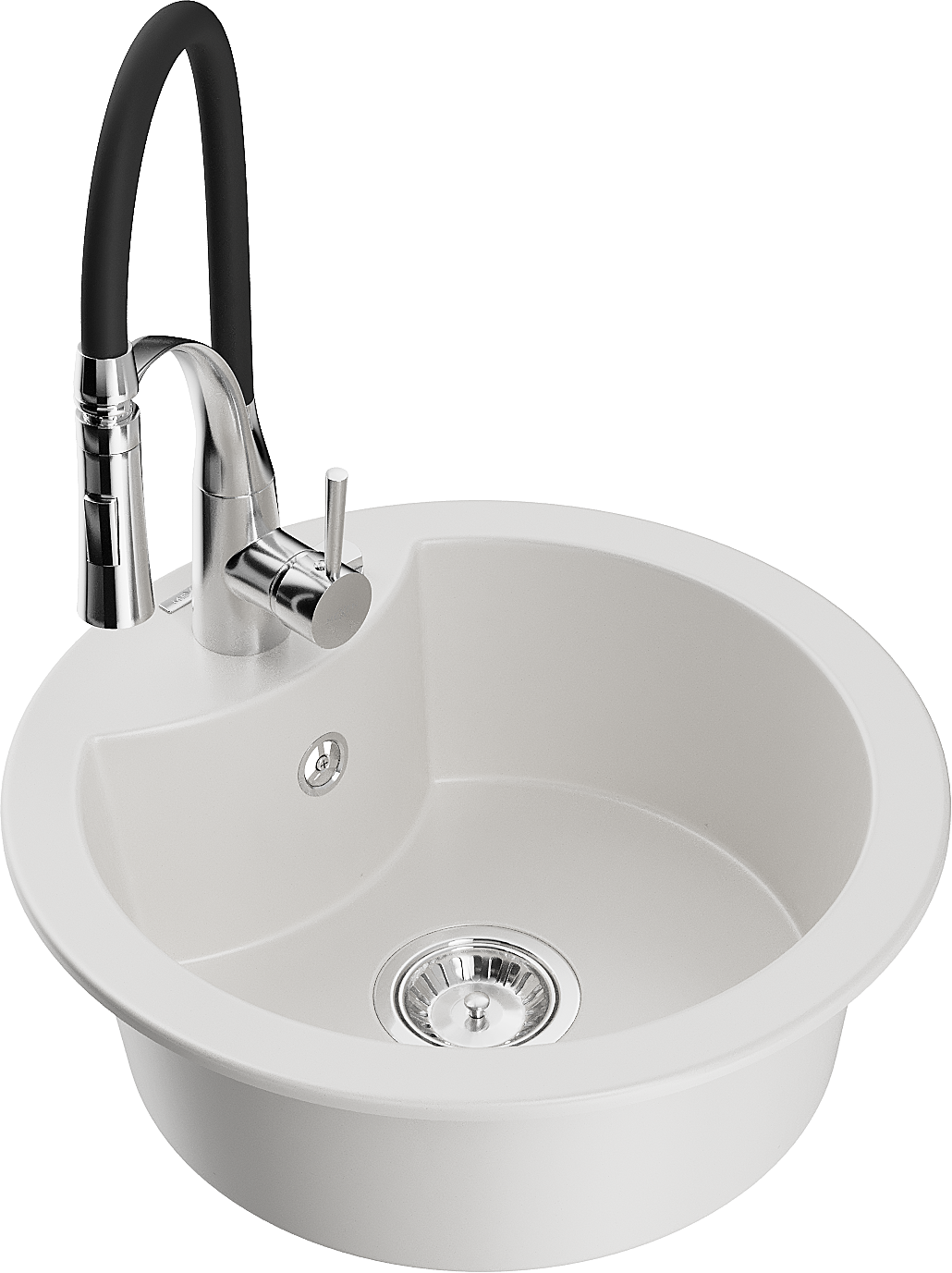 Mexen Diego granieten spoelbak 1-komers met keukenmengkraan Aster, wit - 6512-20-73450-07