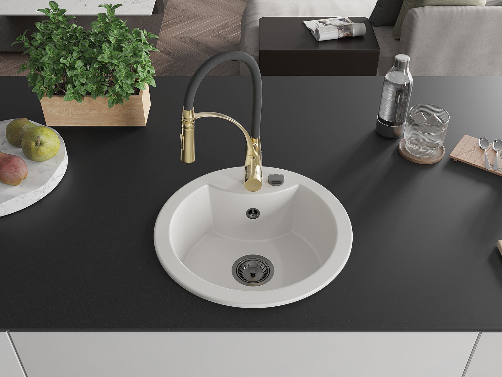 De gootsteen is gemaakt van hoogwaardig graniet. Het vormt een elegante en vooral praktische aanvulling op elke keuken, ongeacht de stijl. De hoge kwaliteit en duurzaamheid van graniet zorgen voor jarenlang gebruik.