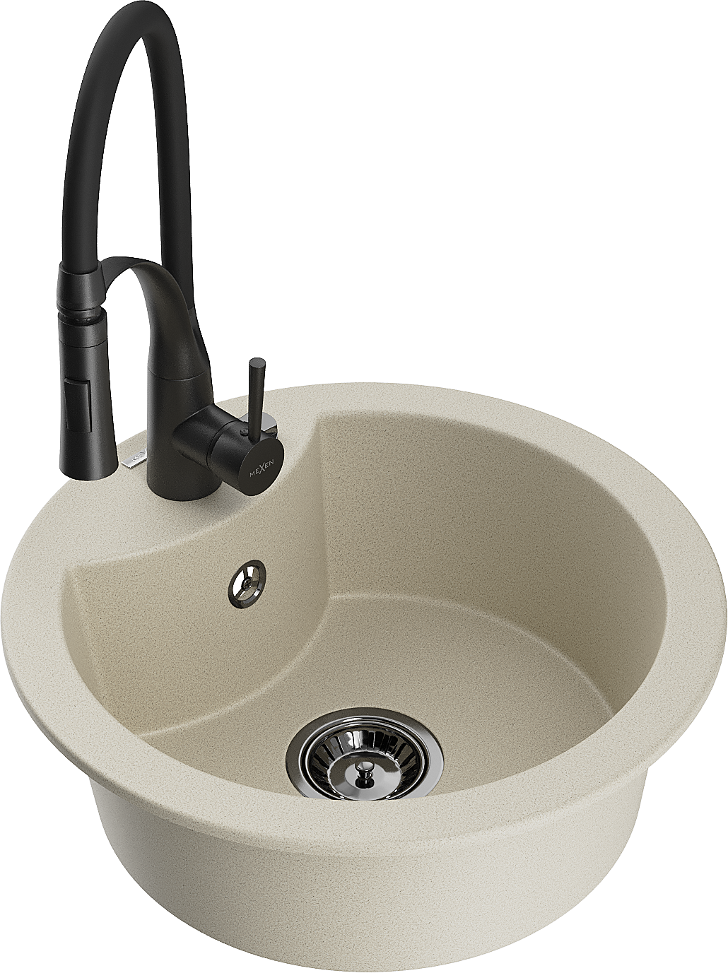 Mexen Diego granieten gootsteen 1-komorige met keukenmengkraan Aster, beige - 6512-69-73450-70-B
