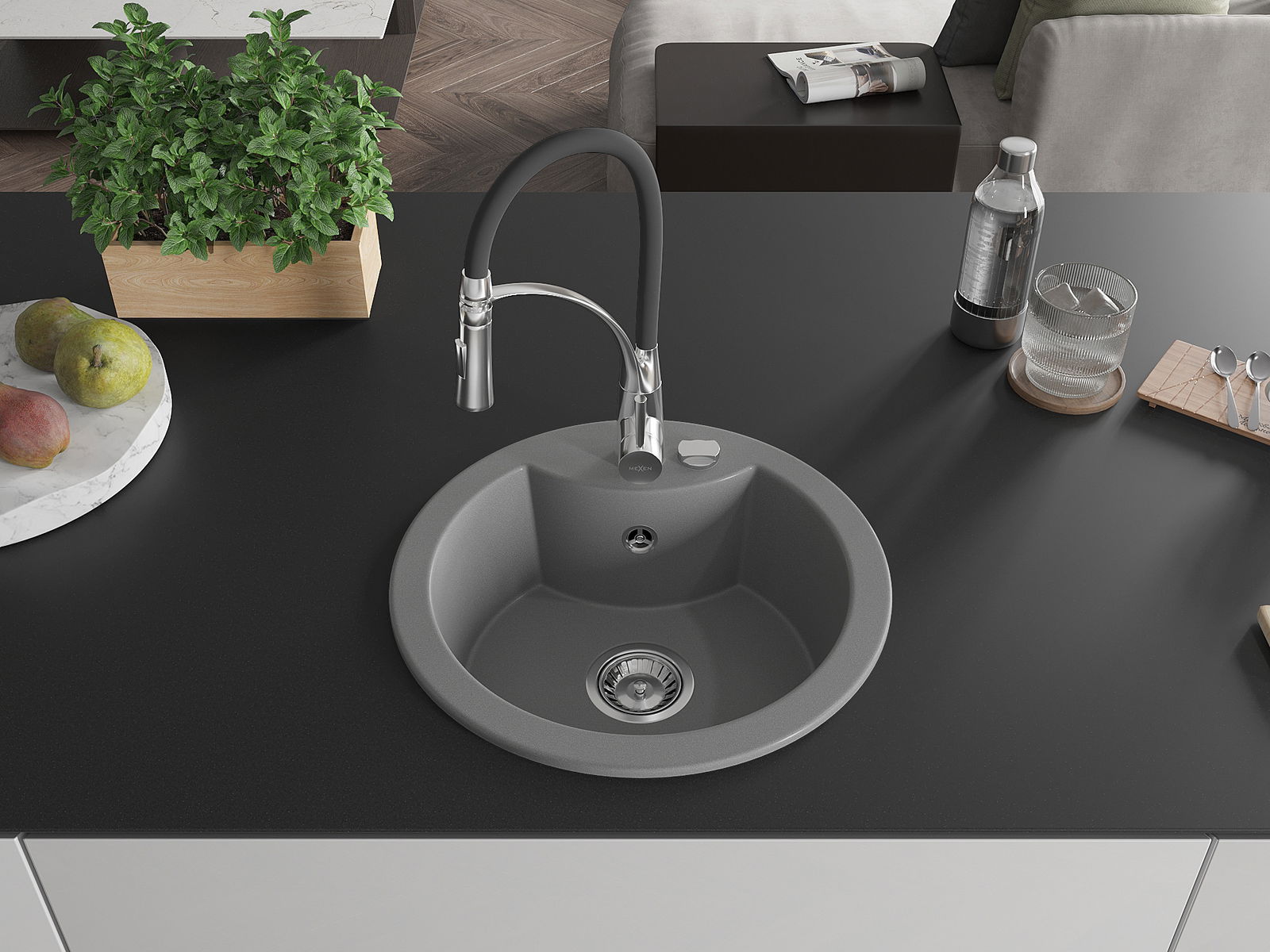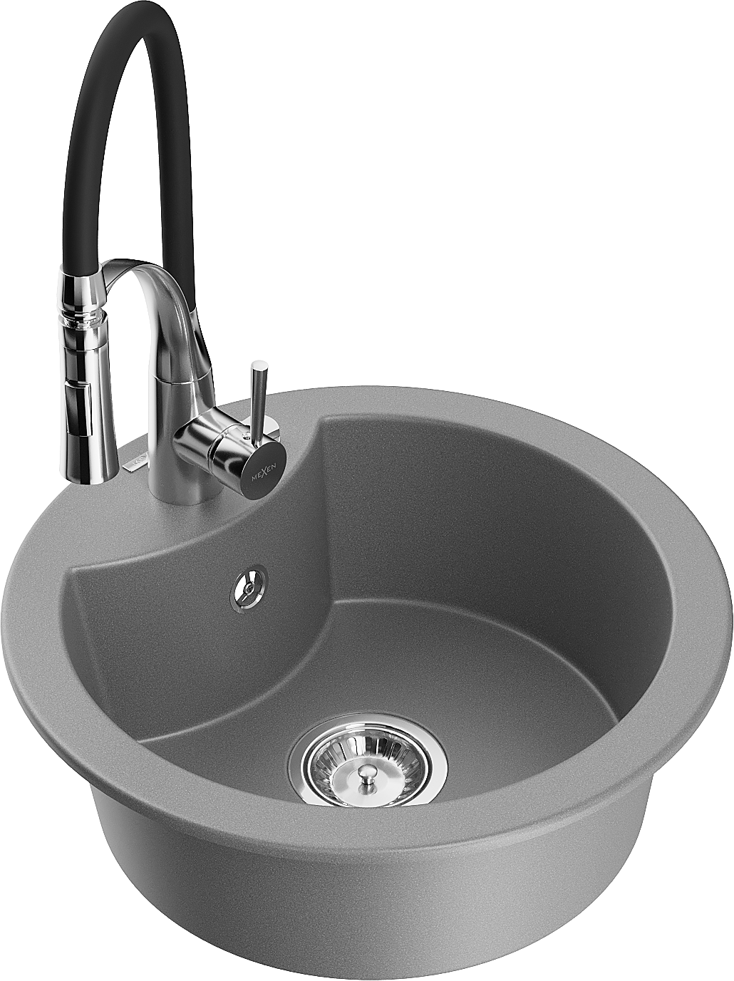 Mexen Diego granieten gootsteen 1-kommer met keukenkraan Aster, grijs - 6512-71-73450-07