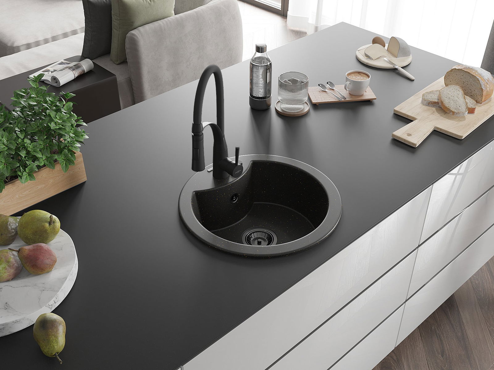 De gootsteen is gemaakt van hoogwaardig graniet. Het vormt een elegante en vooral praktische aanvulling op elke keuken, ongeacht de stijl. De hoge kwaliteit en duurzaamheid van graniet zorgen voor jarenlang gebruik.