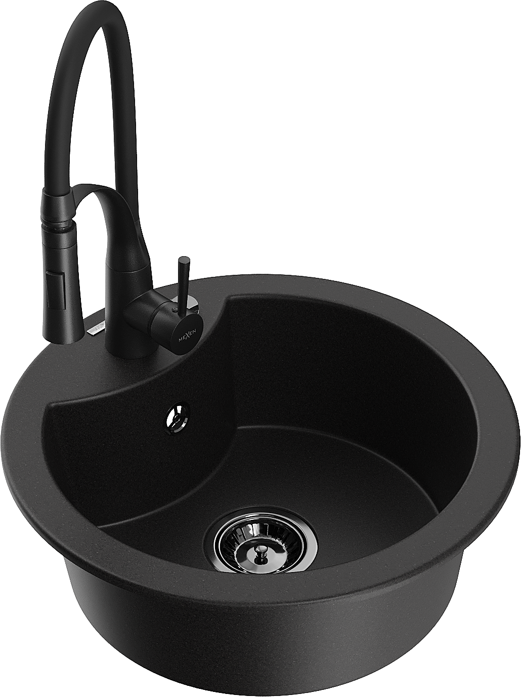Mexen Diego granieten gootsteen 1-baks met keukenmengkraan Aster, zwart - 6512-77-73450-70-B