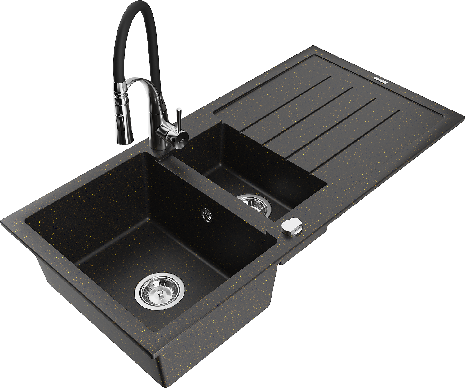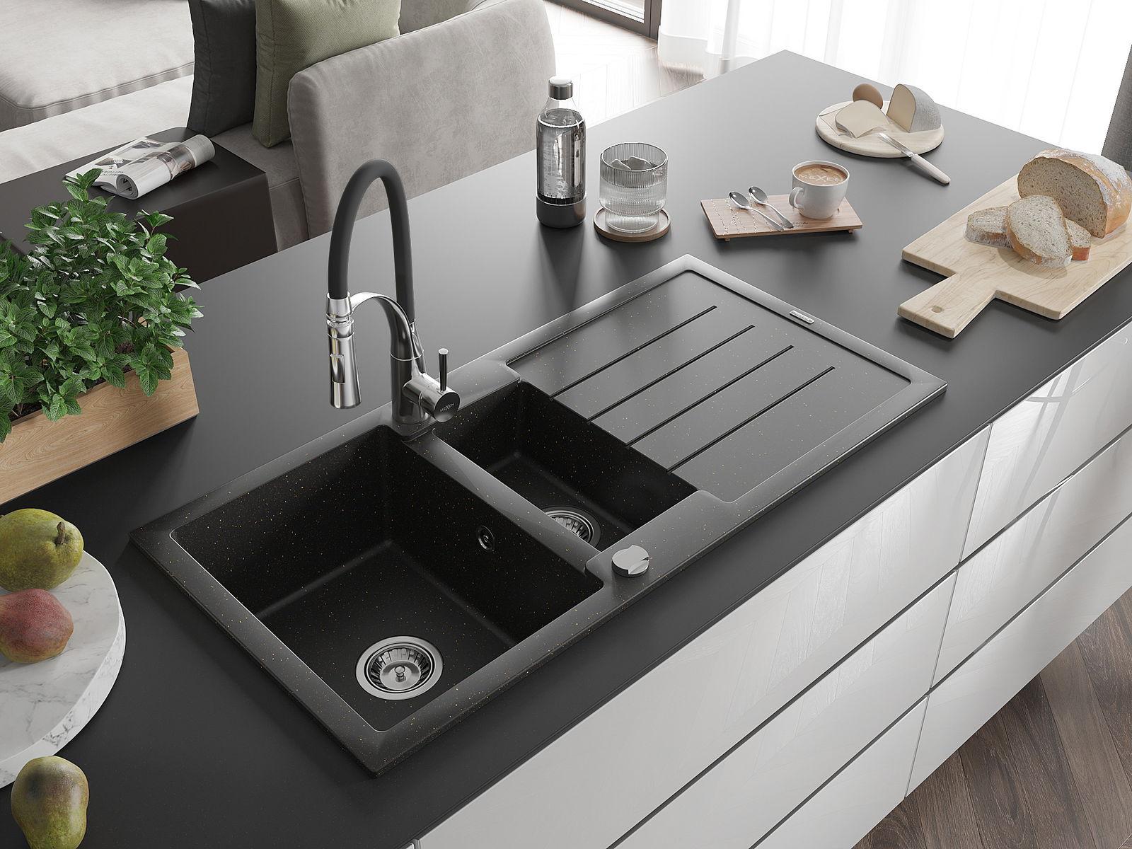 De gootsteen is gemaakt van hoogwaardig graniet. Het vormt een elegante en vooral praktische aanvulling op elke keuken, ongeacht de stijl ervan. De hoge kwaliteit en duurzaamheid van graniet garanderen jarenlang gebruik.