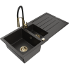 Mexen Andres granieten gootsteen met 1,5 kamers, met afdruiprek en keukenmengkraan Aster, zwart - 6515-77-73450-57-G