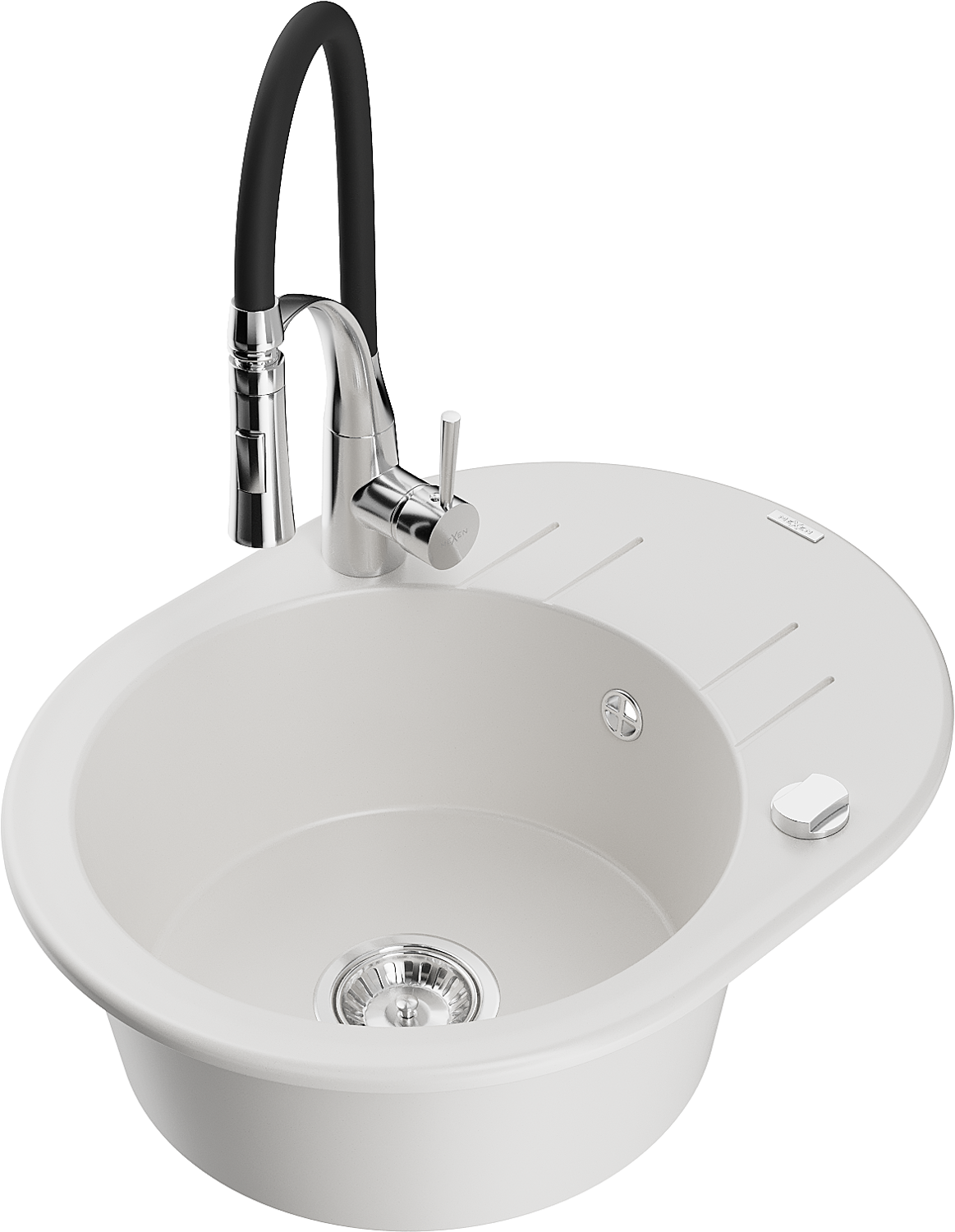 Mexen Kevin granieten spoelbak met 1 bak, afdruiprek en keukenmengkraan Aster, wit - 6517-20-73450-07