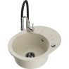 Het oppervlak van de gootsteen is bestand tegen vlekken en verkleuringen, waardoor het gemakkelijk schoon te houden is en zijn kleur behoudt gedurende een lange gebruiksperiode. Een esthetische en praktische aanvulling op elke keuken.