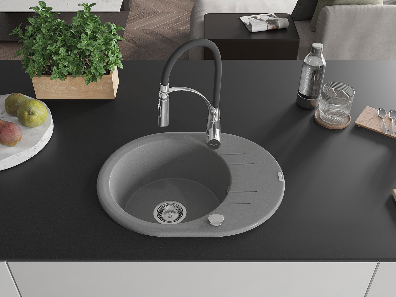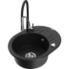 Mexen Kevin granieten spoelbak 1-komor met afdruiprek en keukenmengkraan Aster, grijs - 6517-71-73450-07