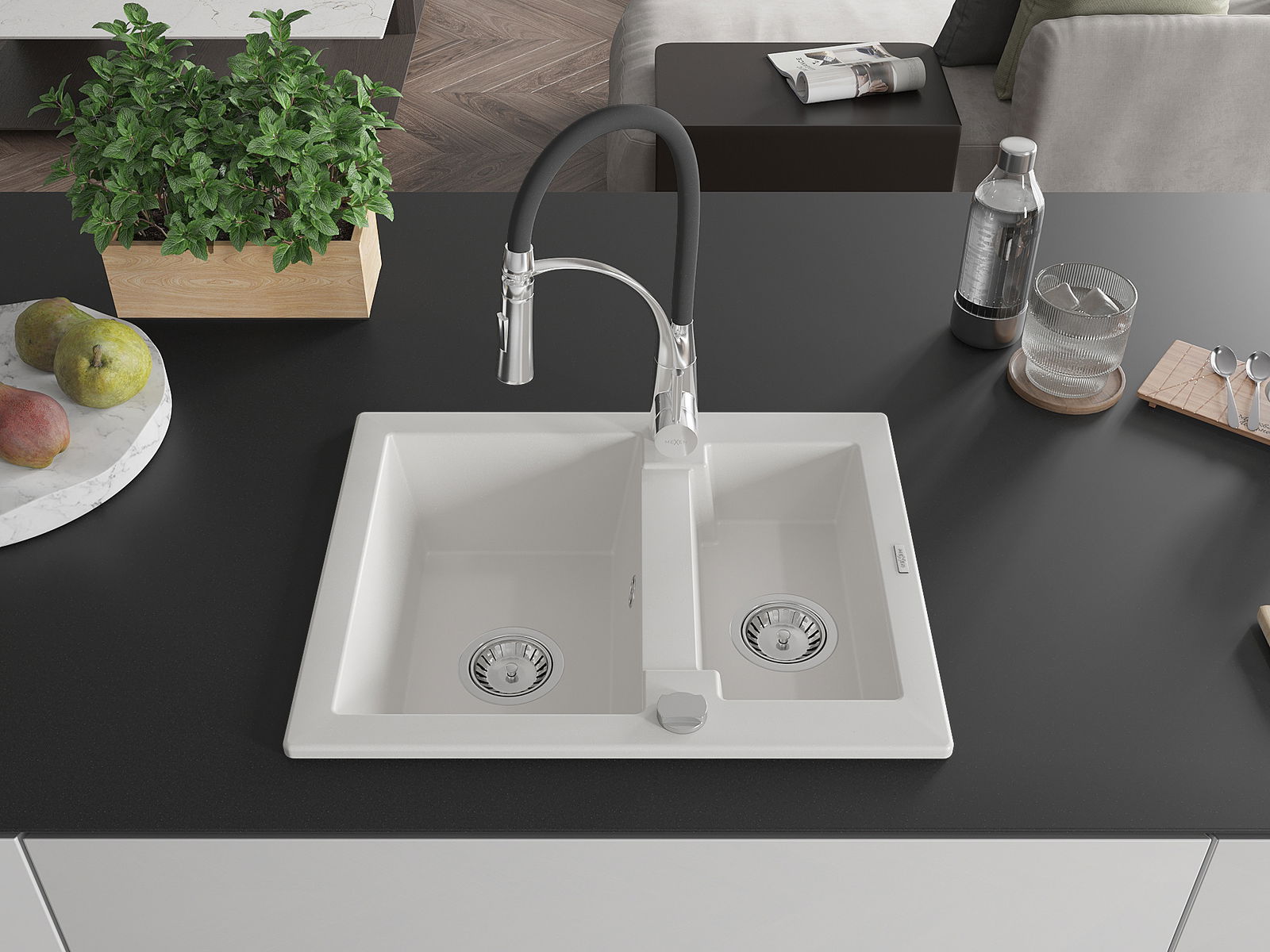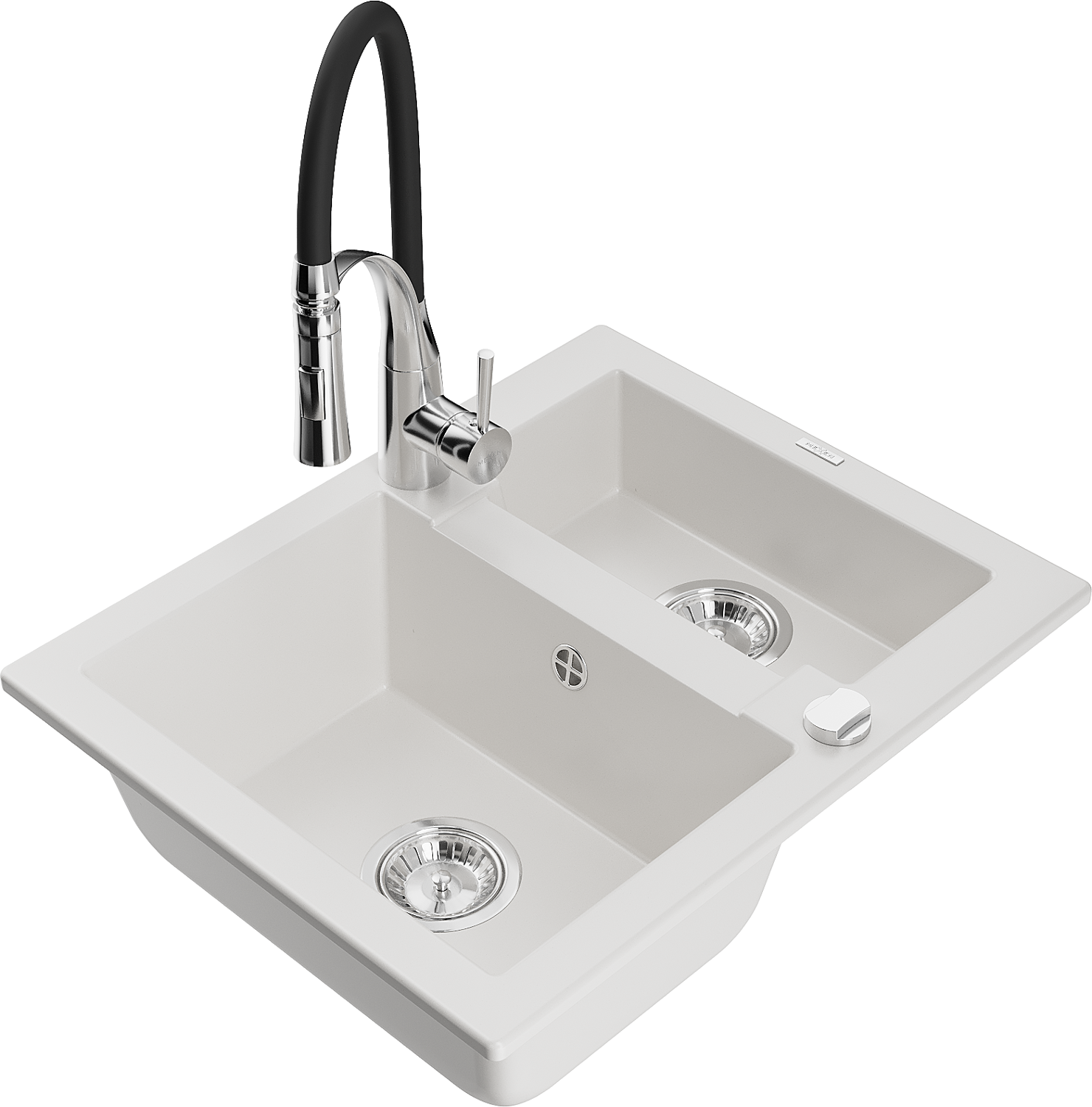 Mexen Carlos granieten gootsteen 1,5-kamer met Astermengkraan, wit - 6518-20-73450-07