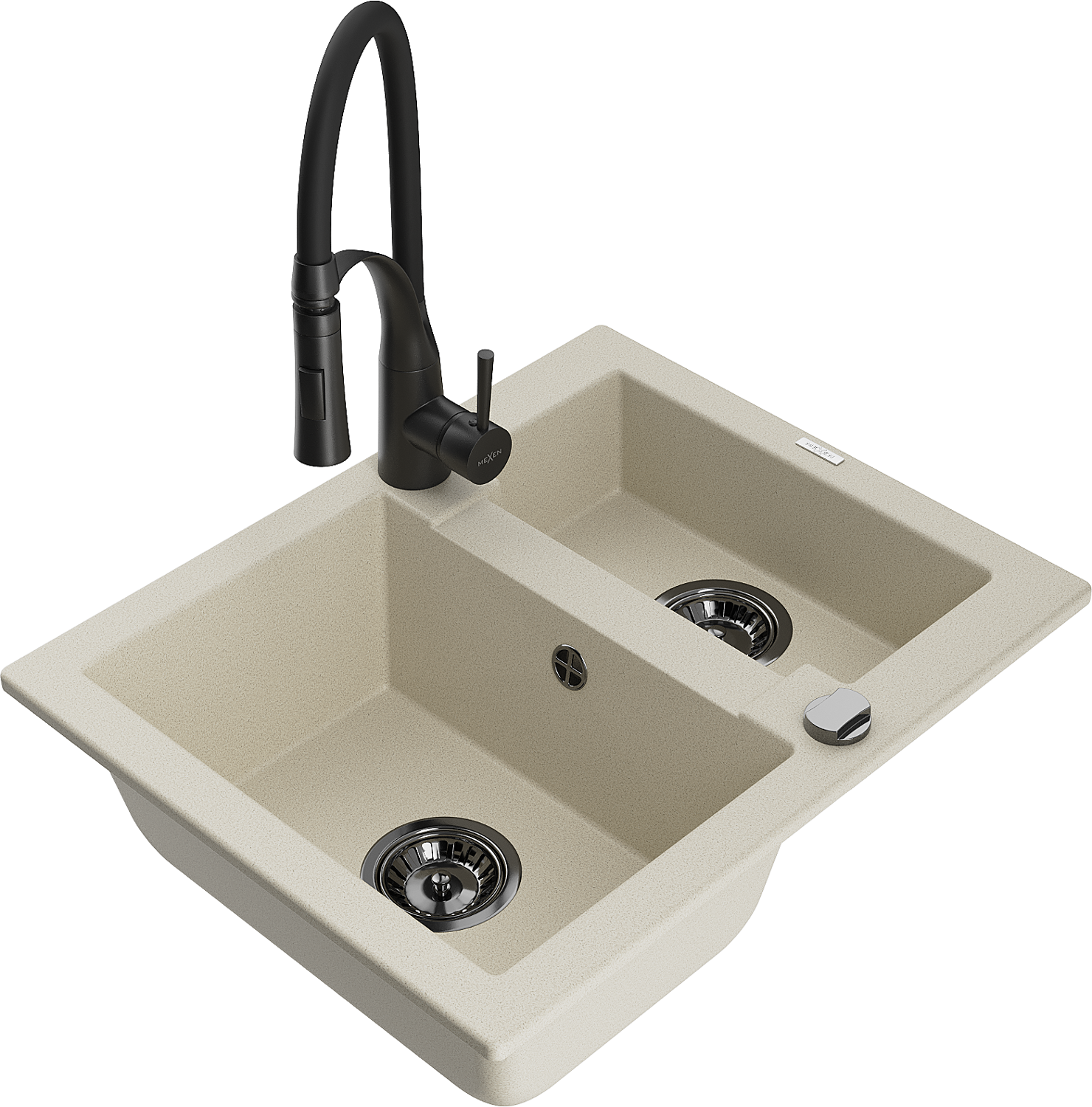 Mexen Carlos granieten gootsteen 1,5-kamer met keukenkraan Aster, beige - 6518-69-73450-70-B