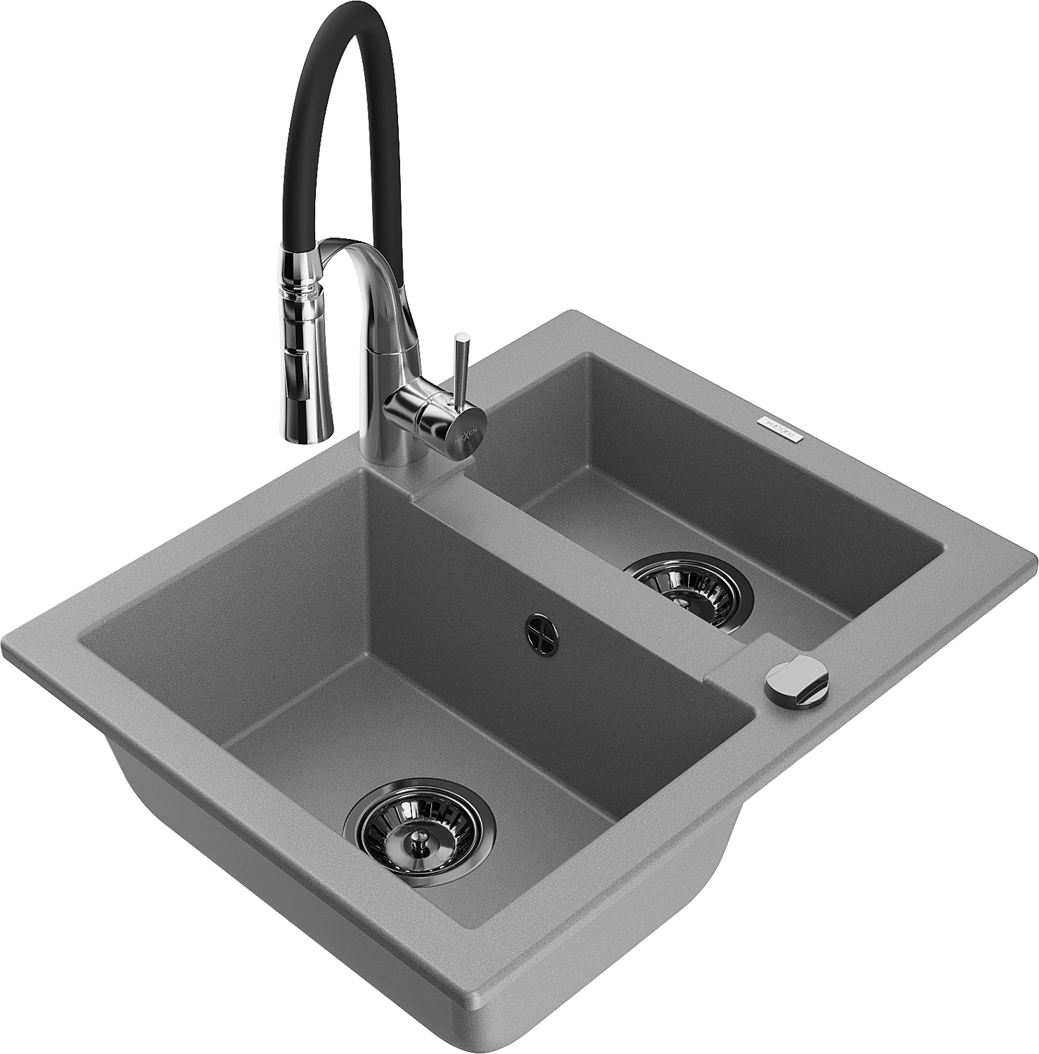 Mexen Carlos granieten spoelbak 1,5-kamers met keukenmengkraan Aster, grijs - 6518-71-73450-07-B