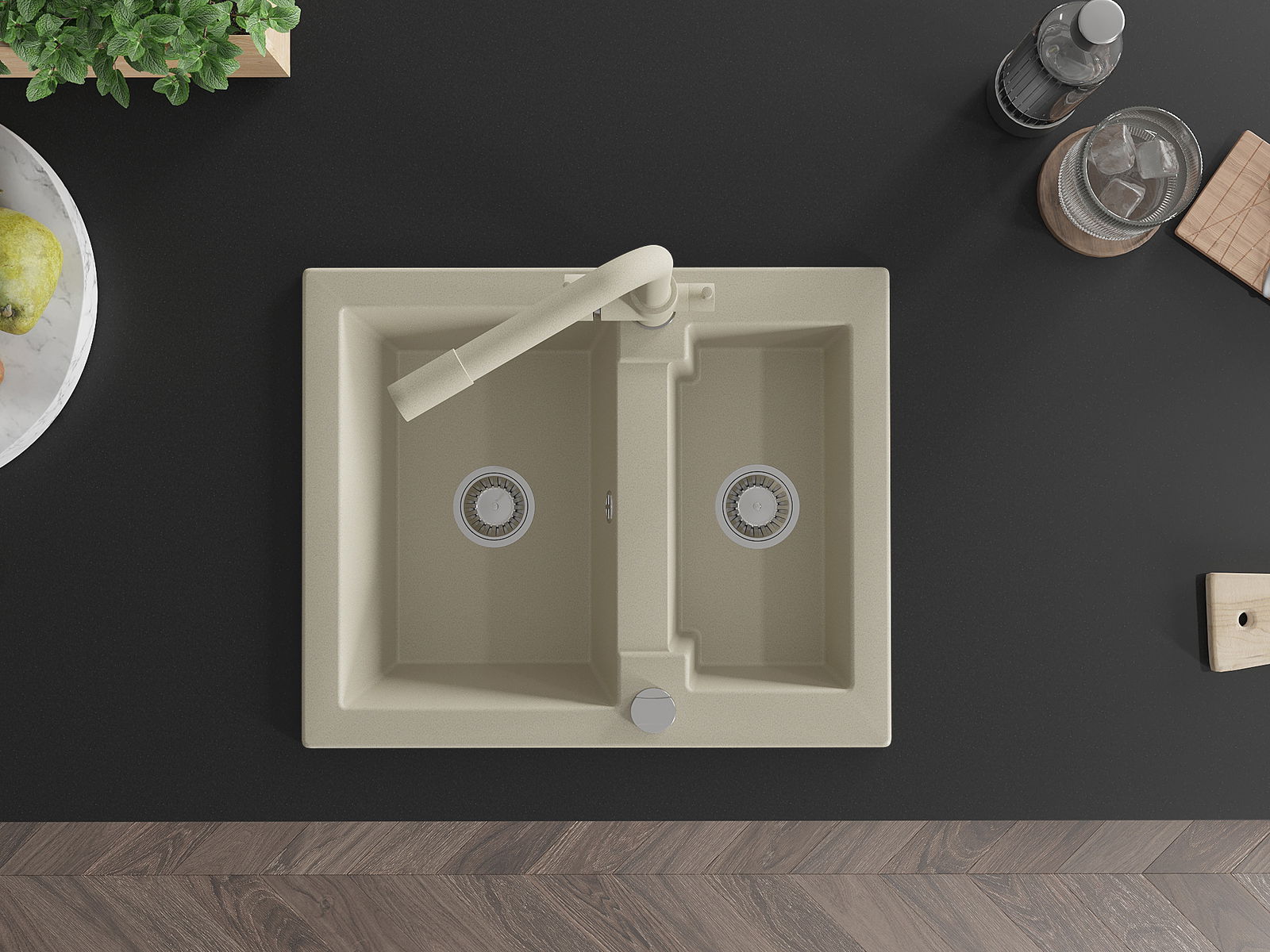 De gootsteen is gemaakt van hoogwaardig graniet. Het vormt een elegante en vooral praktische aanvulling op elke keuken, ongeacht de stijl. De hoge kwaliteit en duurzaamheid van graniet zorgen voor jarenlang gebruik.