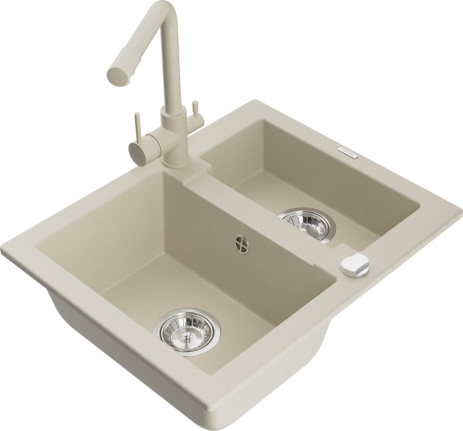 Mexen Carlos granieten gootsteen 1,5-komers met keukenmengkraan Duero, beige - 6518-69-671600-69