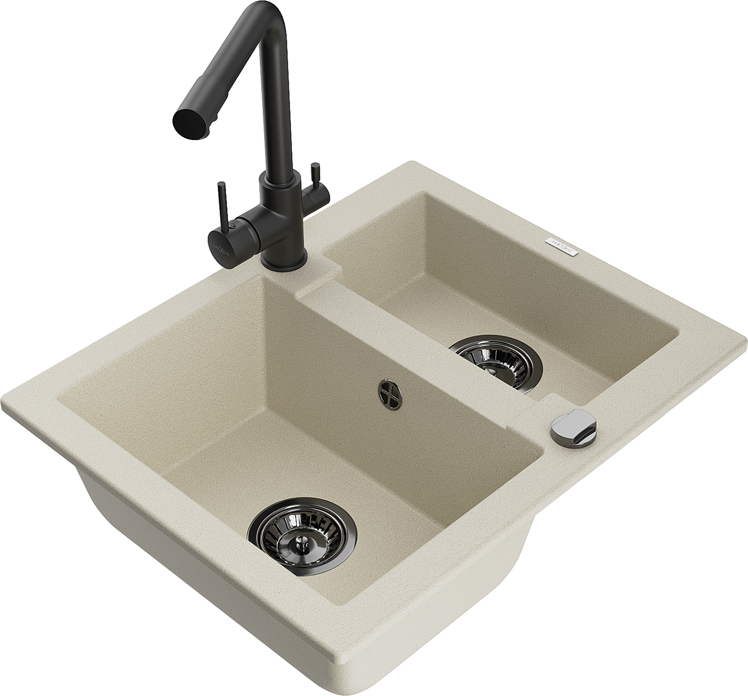 Mexen Carlos granieten spoelbak 1,5-bak met Duero keukenmengkraan, beige - 6518-69-671600-70