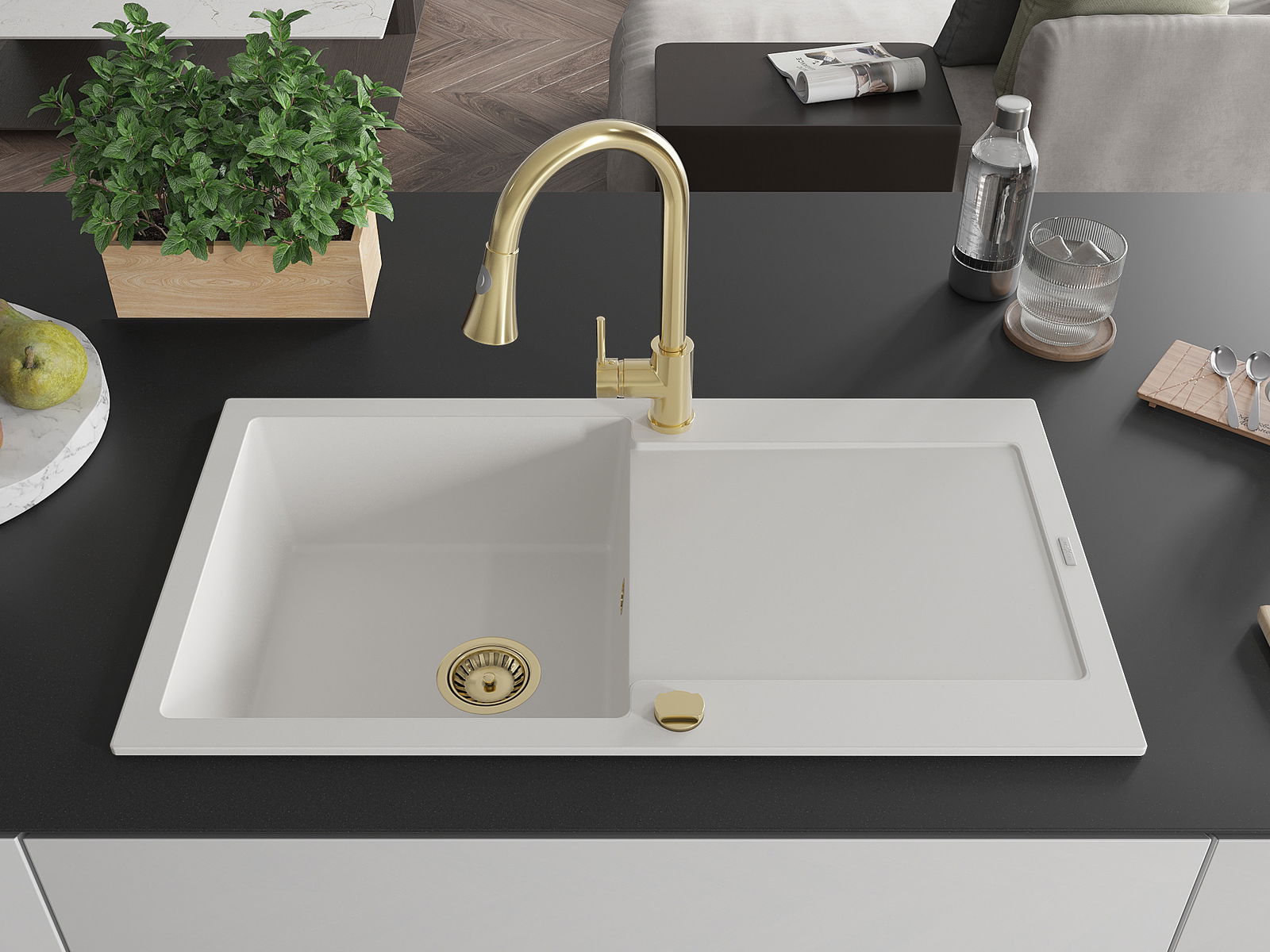 De gootsteen is gemaakt van hoogwaardig graniet. Het vormt een elegante en vooral praktische aanvulling op elke keuken, ongeacht de stijl. De hoge kwaliteit en duurzaamheid van graniet zorgen voor jarenlang gebruik.