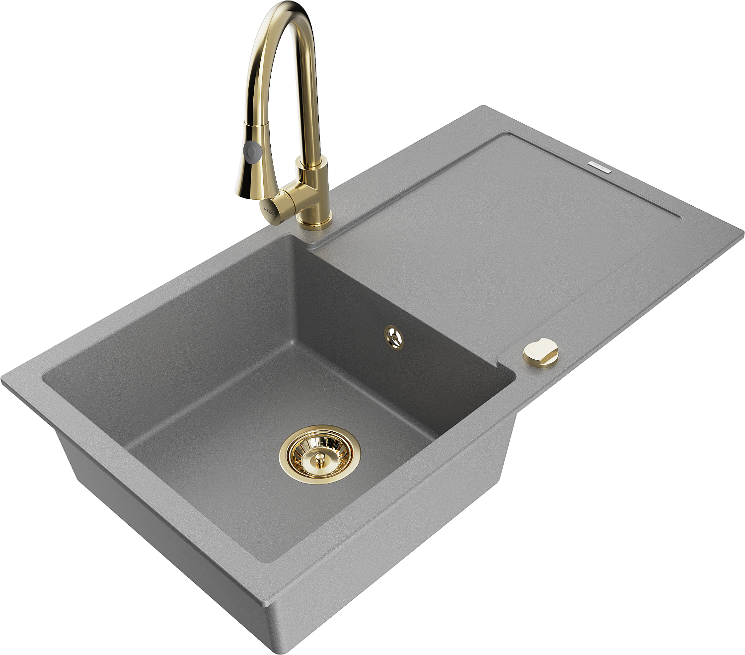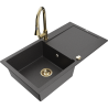 Mexen Leo granieten spoelbak met 1 bak met afdruiprek en keukenmengkraan Elia, grijs - 6501-71-670101-50