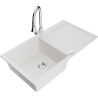 Het oppervlak van de gootsteen is bestand tegen vlekken en verkleuringen, waardoor het gemakkelijk schoon te houden is en zijn kleur behoudt gedurende een lange gebruiksperiode. Een esthetische en praktische aanvulling op elke keuken.