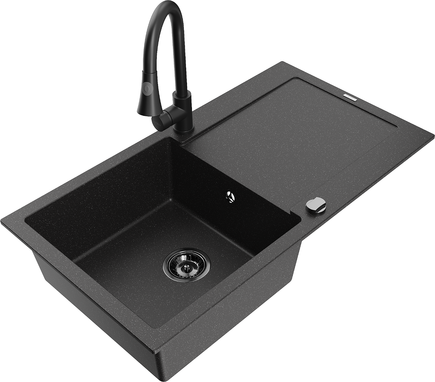 Mexen Leo granieten spoelbak 1-kompartment met afdruiprek en keukenmengkraan Elia, zwart/zilver metallic - 6501-73-670101-70-B