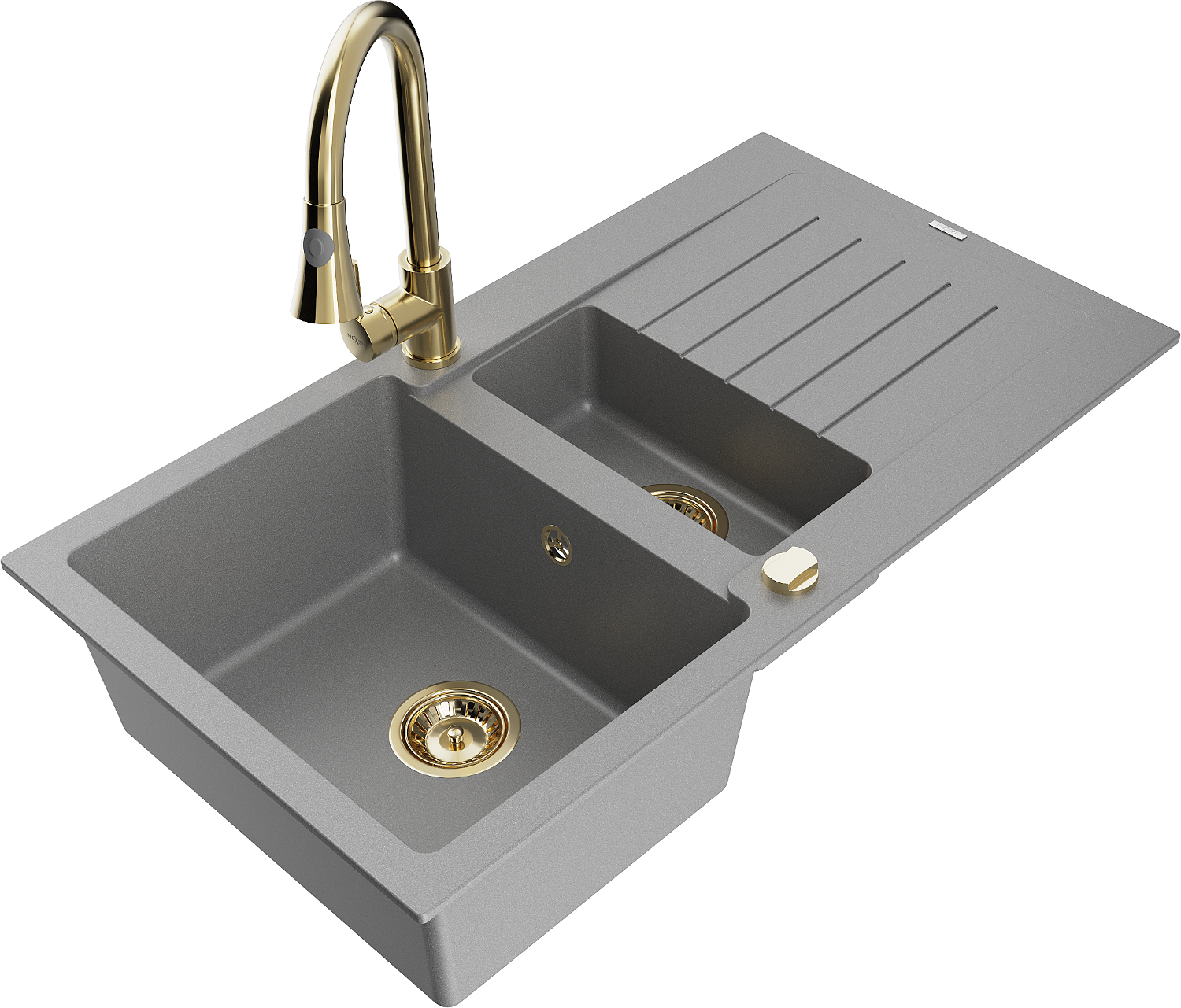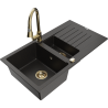 Mexen Matias granieten gootsteen 1,5-komor met afdruiprek en keukenmengkraan Elia, grijs - 6502-71-670101-50