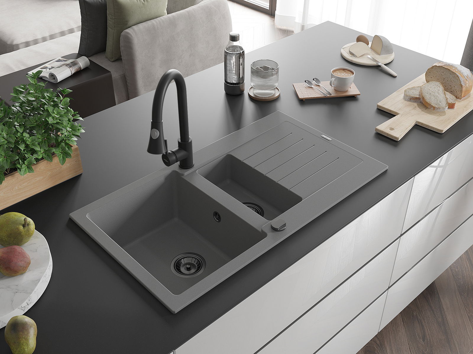 De gootsteen is gemaakt van hoogwaardig graniet. Het vormt een elegante en vooral praktische aanvulling op elke keuken, ongeacht de stijl. De hoge kwaliteit en duurzaamheid van graniet zorgen voor jarenlang gebruik.