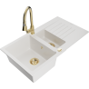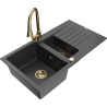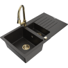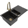 Mexen Matias granieten spoelbak 1,5-kamer met afdruiprek en keukenkraan Elia, zwart - 6502-77-670101-50