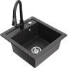 Mexen Vito granieten gootsteen 1-kamer met keukenmengkraan Elia, zwart/zilver metallic - 6503-73-670101-70