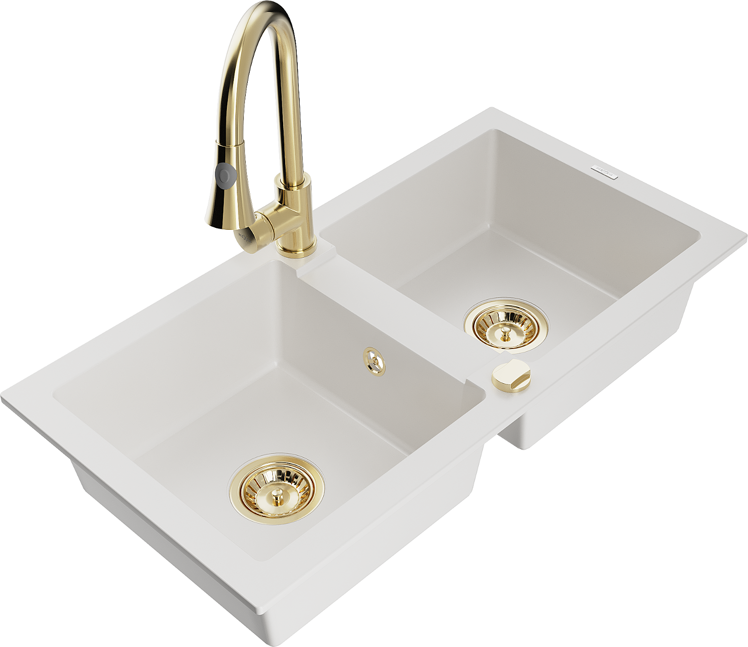 Mexen Mario granieten spoelbak met 2 kommen en Elia keukenkraan, wit - 6504-20-670101-50