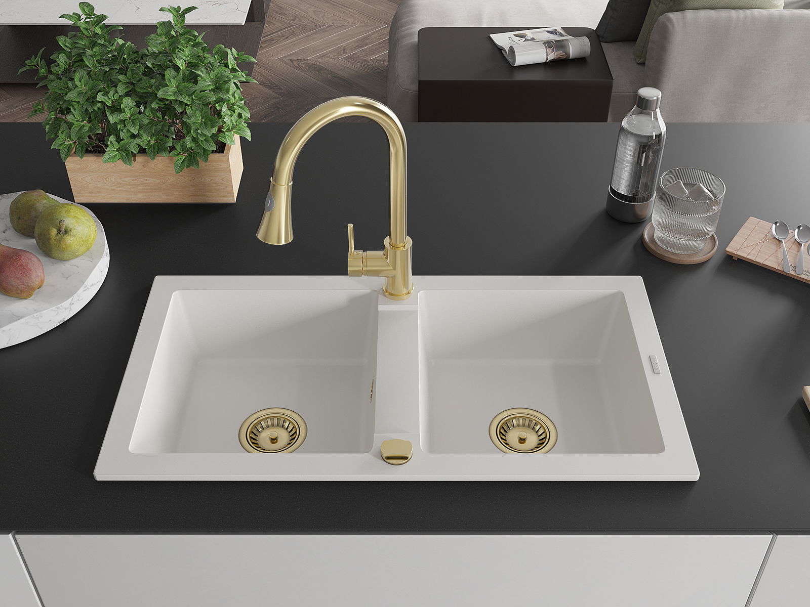 De gootsteen is gemaakt van hoogwaardig graniet. Het vormt een elegante en vooral praktische aanvulling op elke keuken, ongeacht de stijl. De hoge kwaliteit en duurzaamheid van graniet zorgen voor jarenlang gebruik.