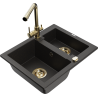 Mexen Carlos granieten gootsteen 1,5-komor met keukenmengkraan Duero, zwart/zilveren metallic - 6518-73-671600-50