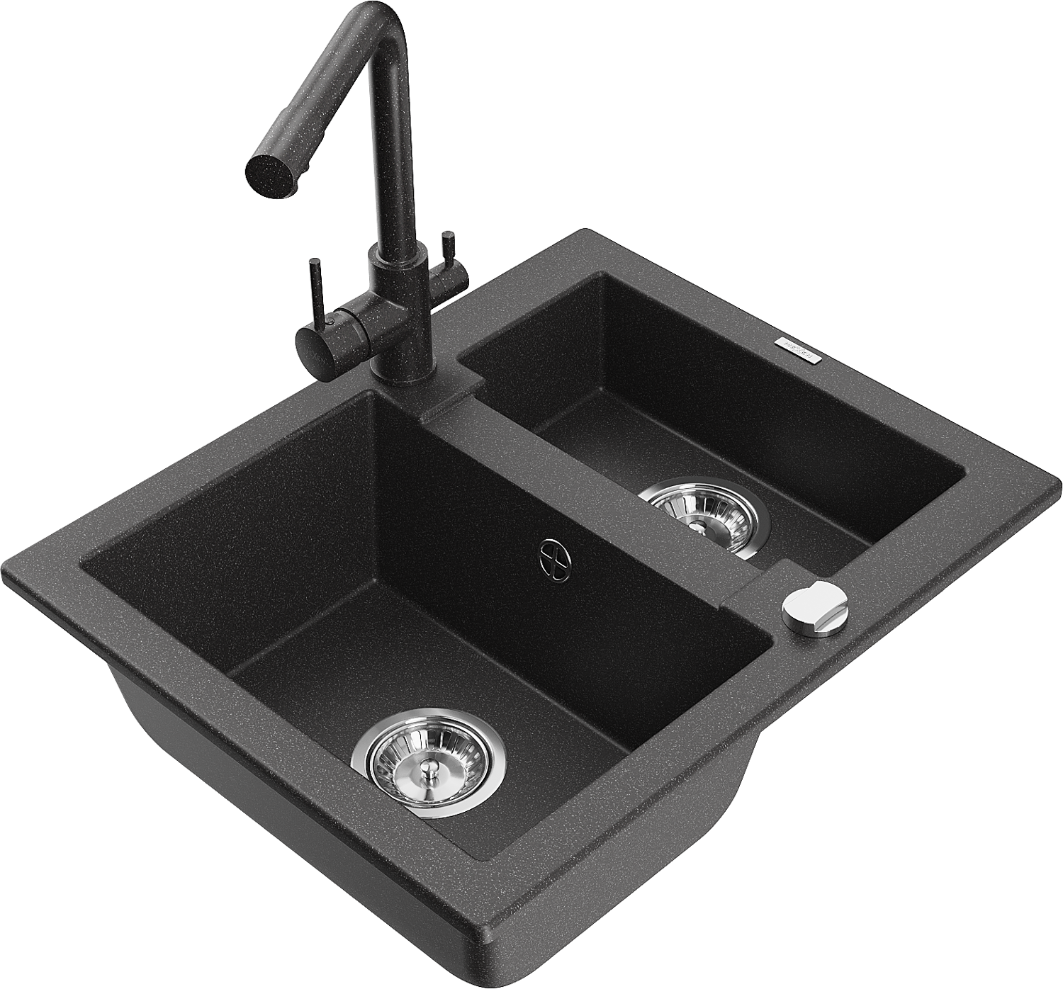Mexen Carlos granieten gootsteen 1,5-komor met Duero keukenkraan, zwart gespikkeld - 6518-76-671600-76