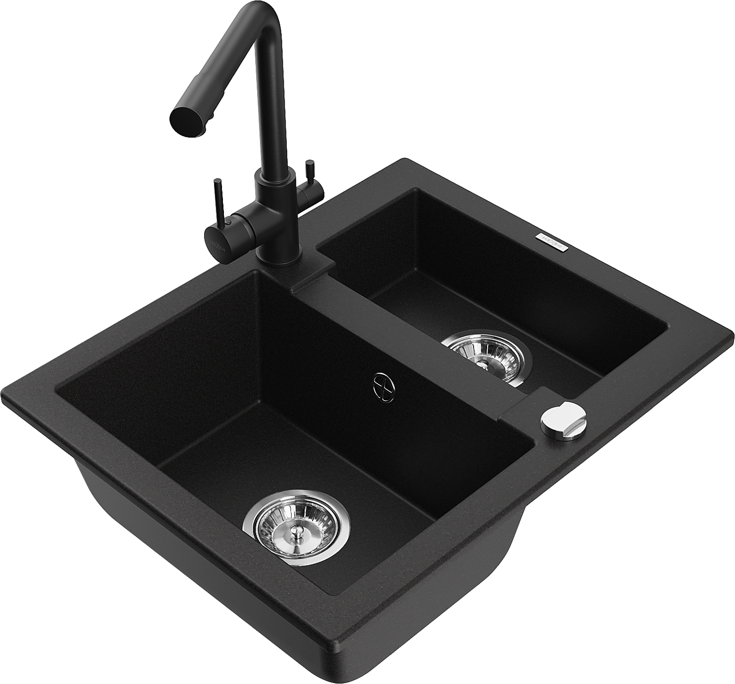 Mexen Carlos granieten spoelbak 1,5-komor met Duero keukenkraan, zwart - 6518-77-671600-70