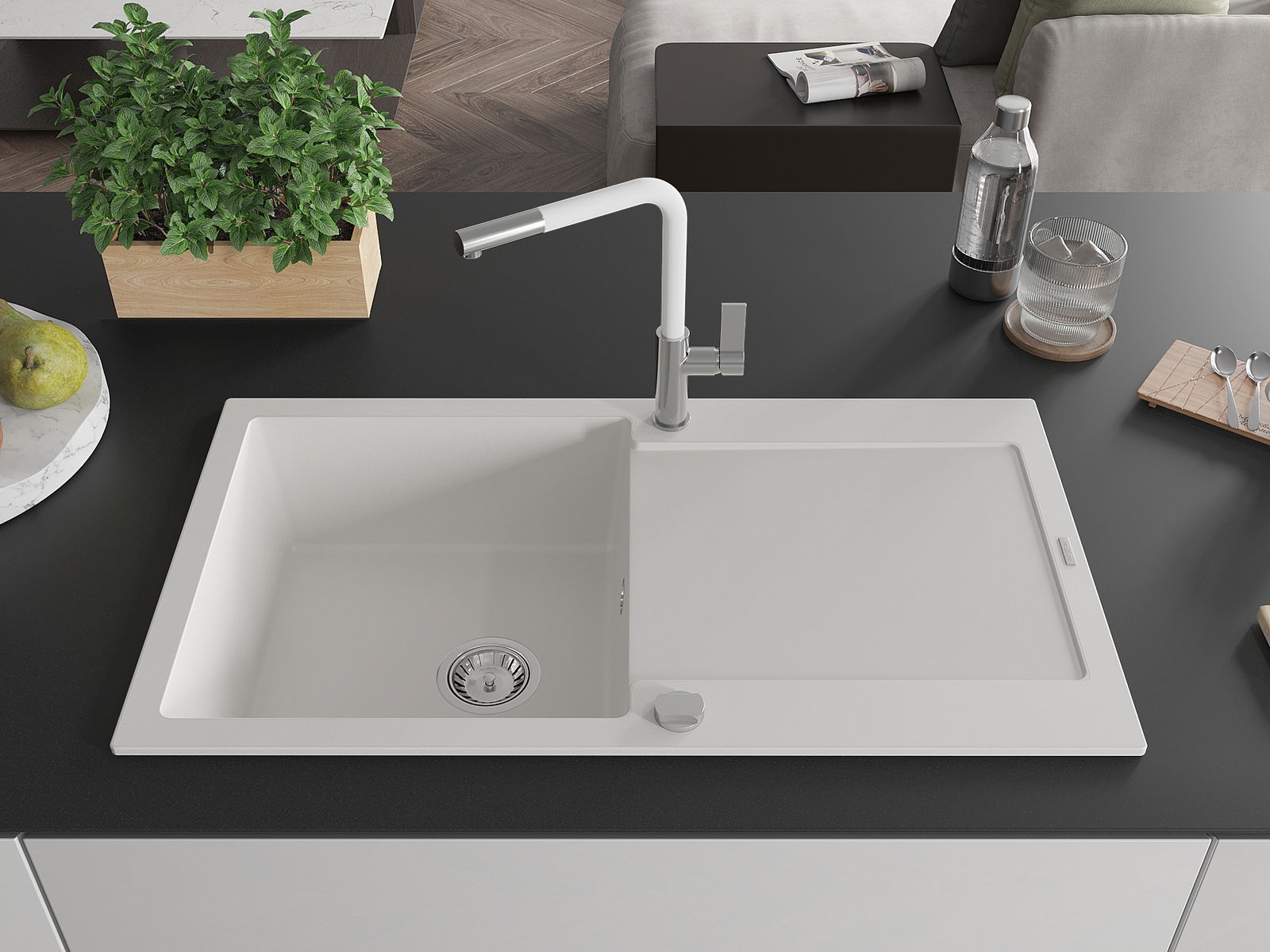 De gootsteen is gemaakt van hoogwaardig graniet. Het vormt een elegante en vooral praktische aanvulling op elke keuken, ongeacht de stijl. De hoge kwaliteit en duurzaamheid van graniet zorgen voor jarenlang gebruik.