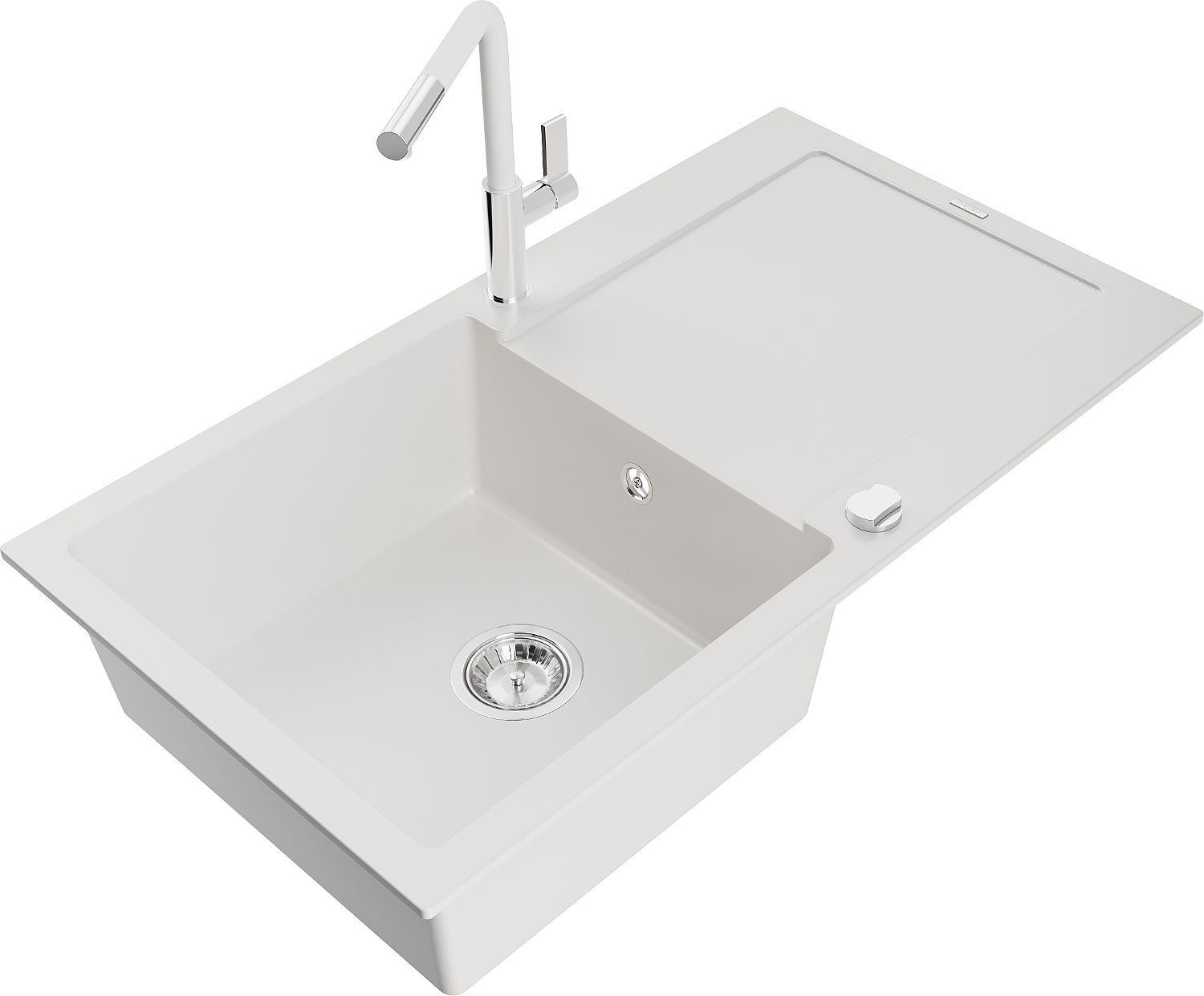 Mexen Leo granieten gootsteen 1-kom met afdruiprek en keukenmengkraan Flora, wit - 6501-20-670401-02
