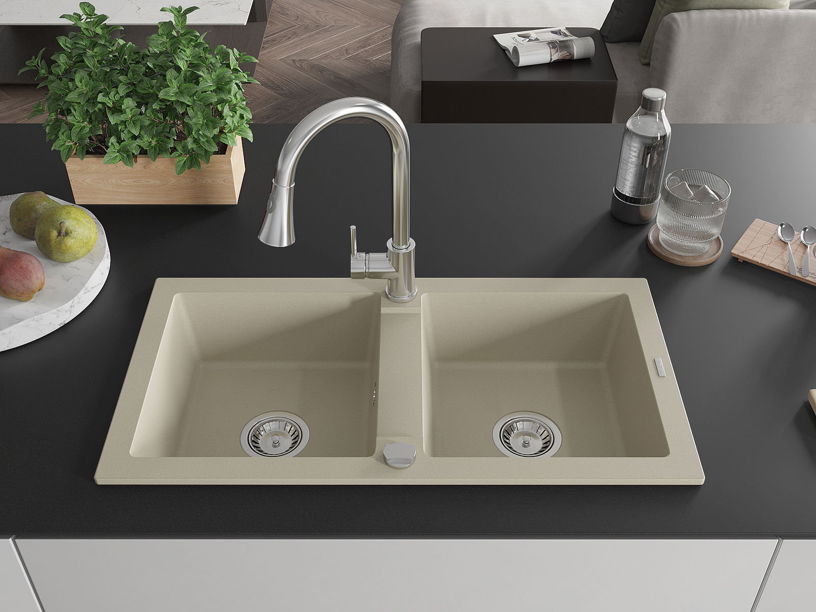 De gootsteen is gemaakt van hoogwaardig graniet. Het vormt een elegante en vooral praktische aanvulling op elke keuken, ongeacht de stijl. De hoge kwaliteit en duurzaamheid van graniet zorgen voor jarenlang gebruik.