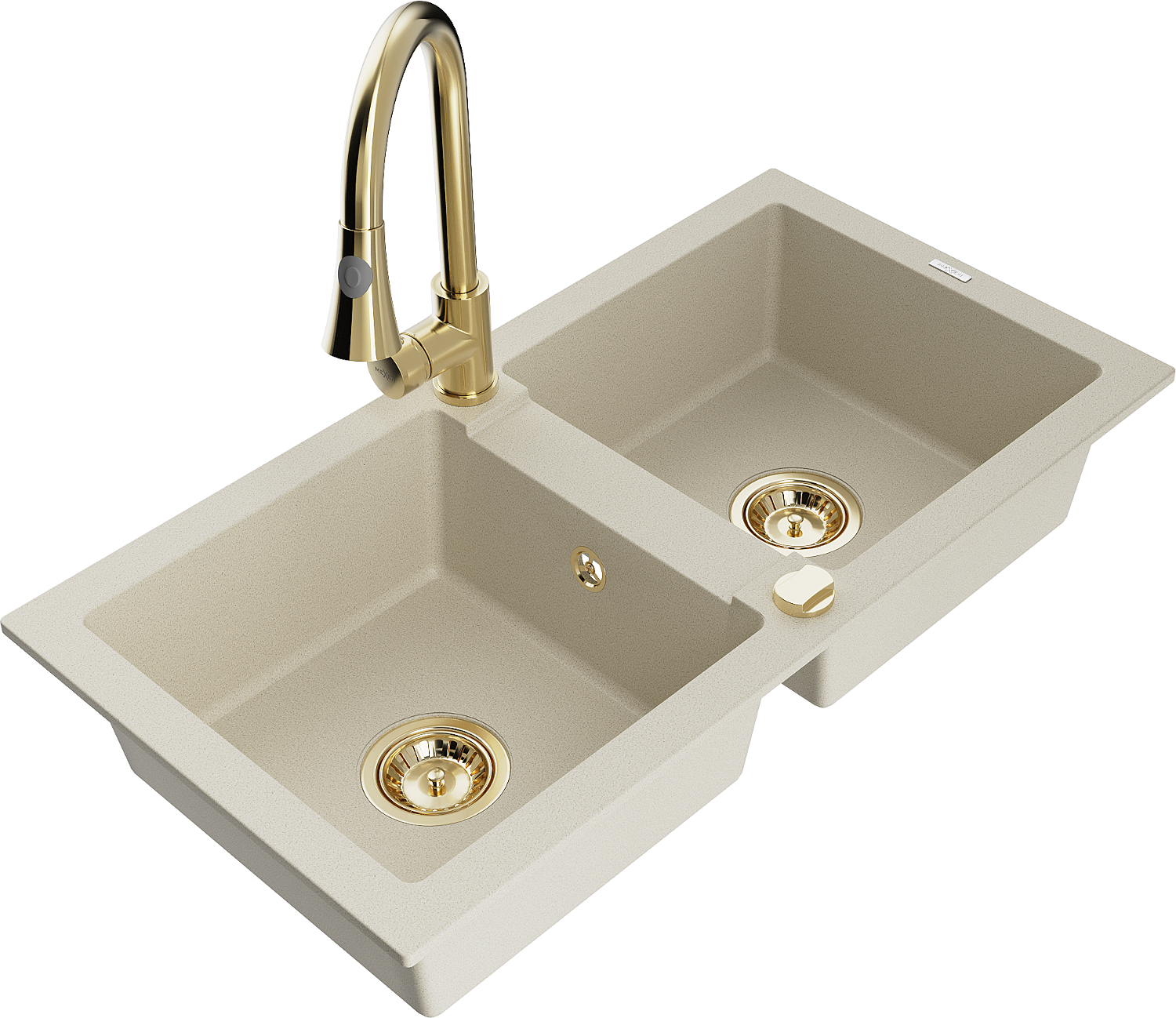 Mexen Mario granieten gootsteen, 2 compartimenten met keukenmengkraan Elia, beige - 6504-69-670101-50