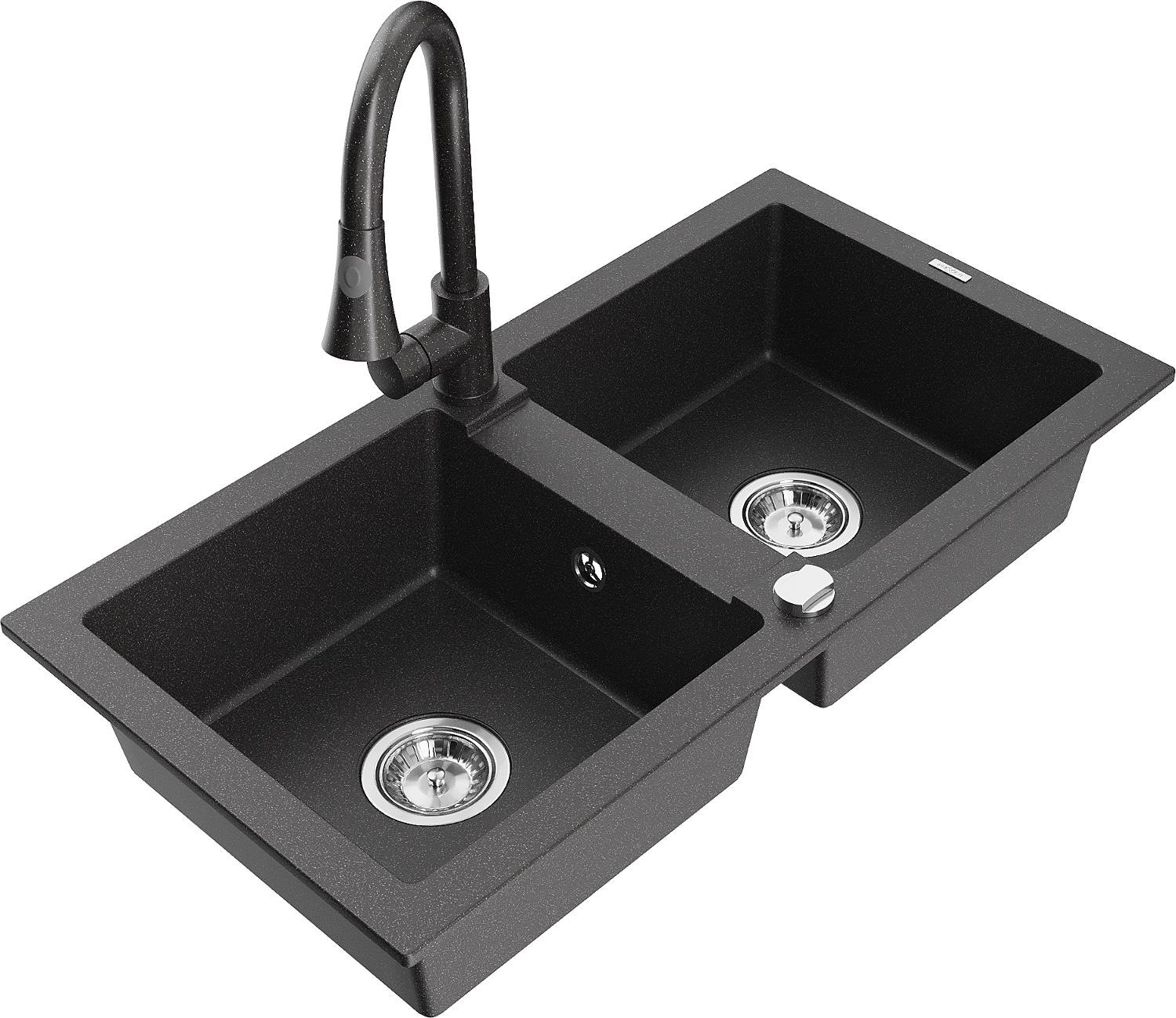 Mexen Mario granieten gootsteen 2-kamers met keukenmengkraan Elia, zwart gespikkeld - 6504-76-670101-76