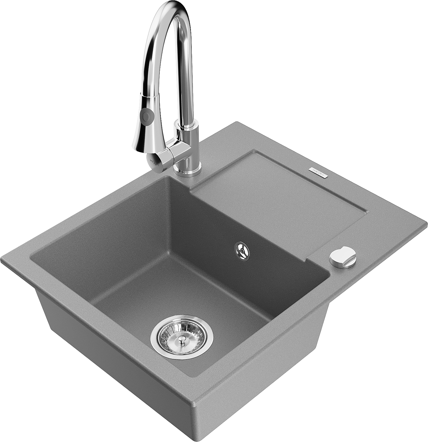 Mexen Enzo granieten spoelbak met 1 bak en afdruiprek en keukenmengkraan Elia, grijs - 6506-71-670101-00