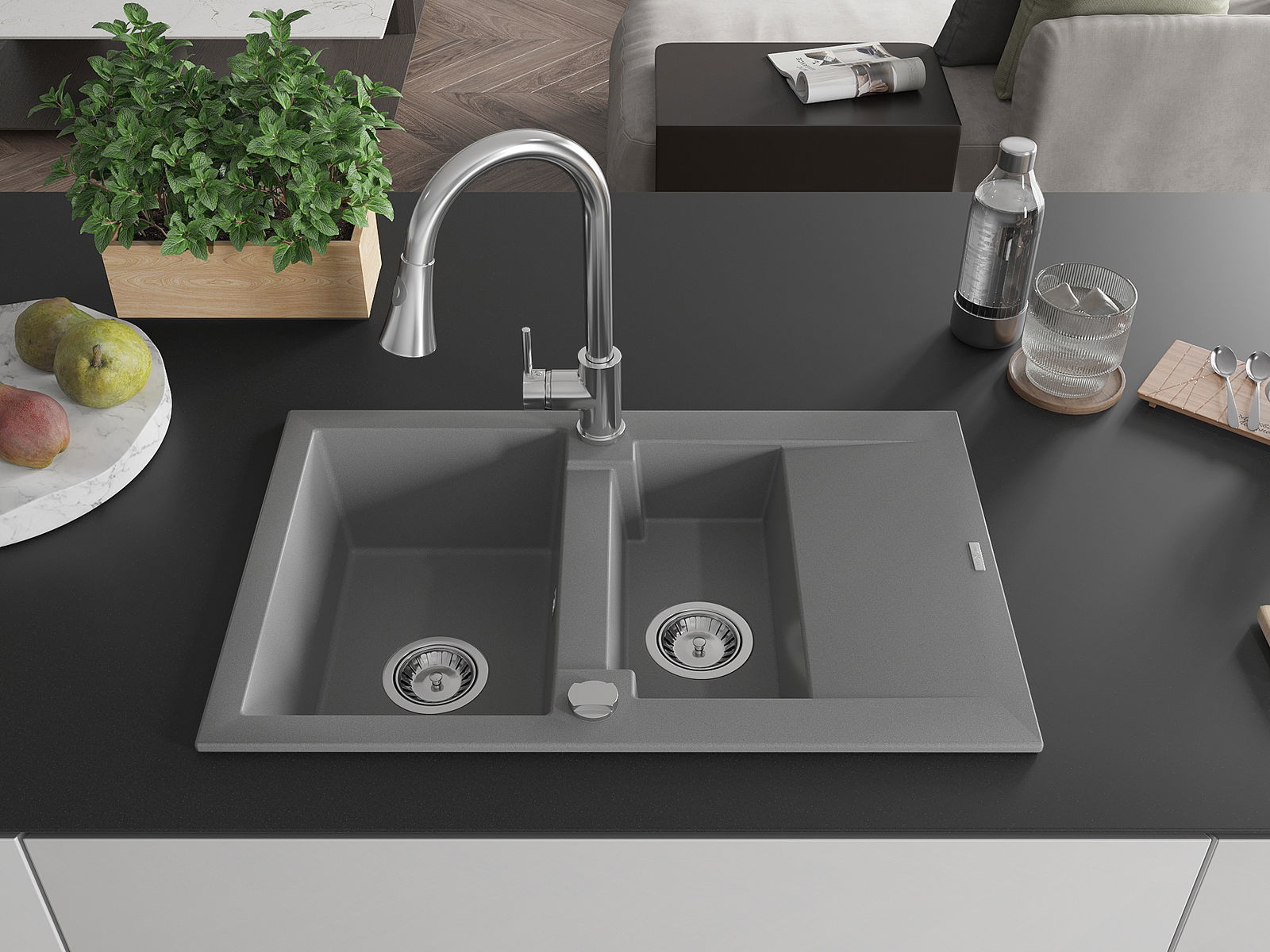 Het oppervlak van de spoelbak is zeer goed gehard en biedt een uitzonderlijke weerstand tegen mechanische beschadigingen en krassen. Het duurzame materiaal zorgt ervoor dat u jarenlang van zijn mooie uiterlijk kunt genieten.