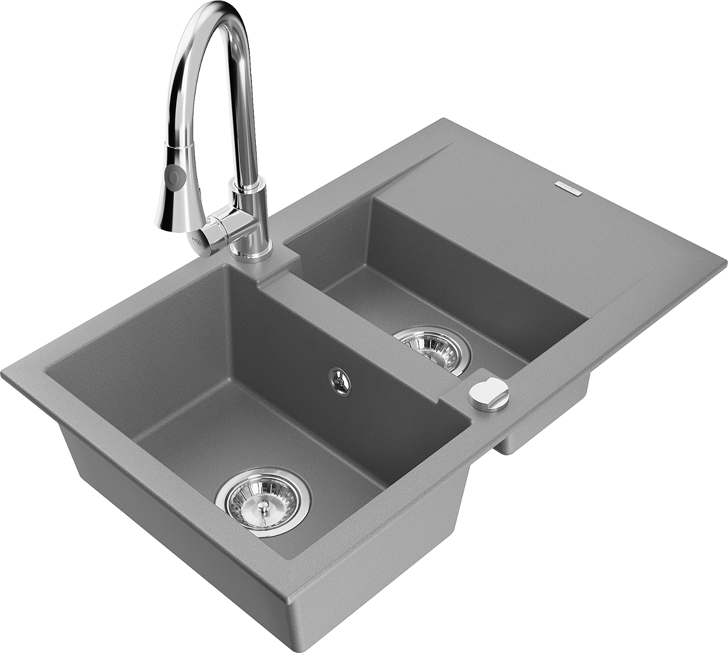 Mexen Gaspar granieten gootsteen 1,5-komors met druiprek en keukenmengkraan Elia, grijs - 6507-71-670101-00