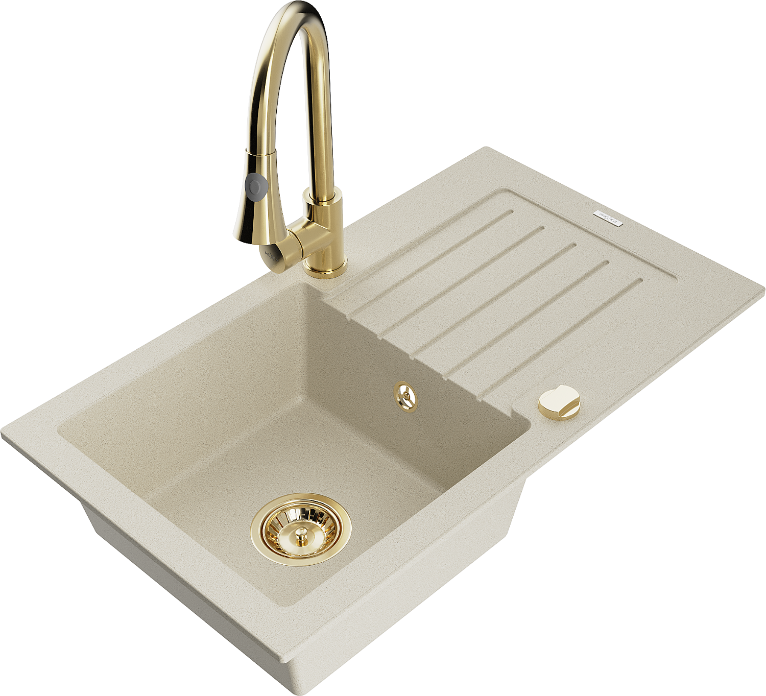 Mexen Pablo granieten spoelbak 1-kom. met afdruiprek en keukenkraan Elia, beige - 6510-69-670101-50