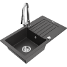 Mexen Pablo granieten gootsteen 1-bak met afdruipplaat en keukenkraan Elia, zwart/zilver metallic - 6510-73-670101-00