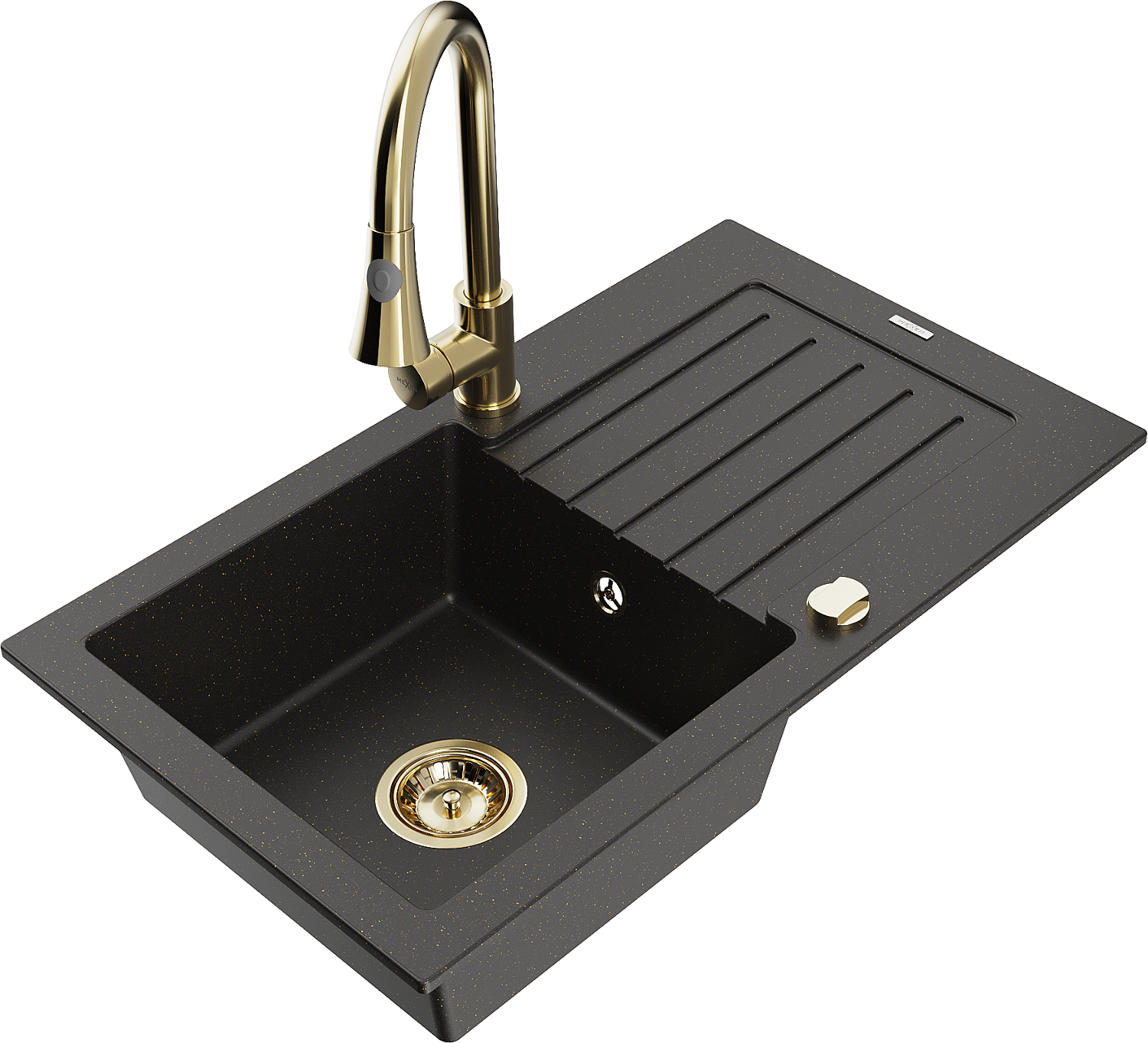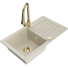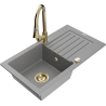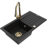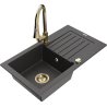 Mexen Pablo granieten spoelbak met 1 bak, afdruiprek en keukenkraan Elia, zwart/goud metallic - 6510-75-670101-50