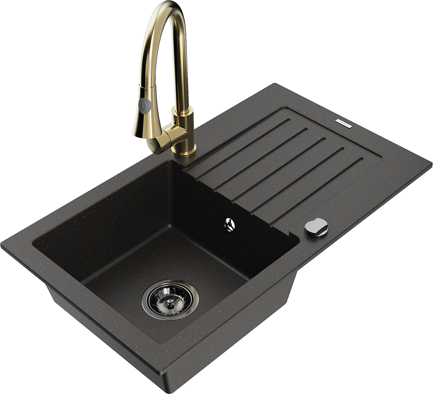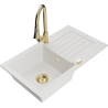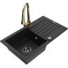 Mexen Pablo granieten spoelbak met 1 kom, afdruiprek en Elia keukenkraan, zwart/gouden metallic - 6510-75-670101-50-B