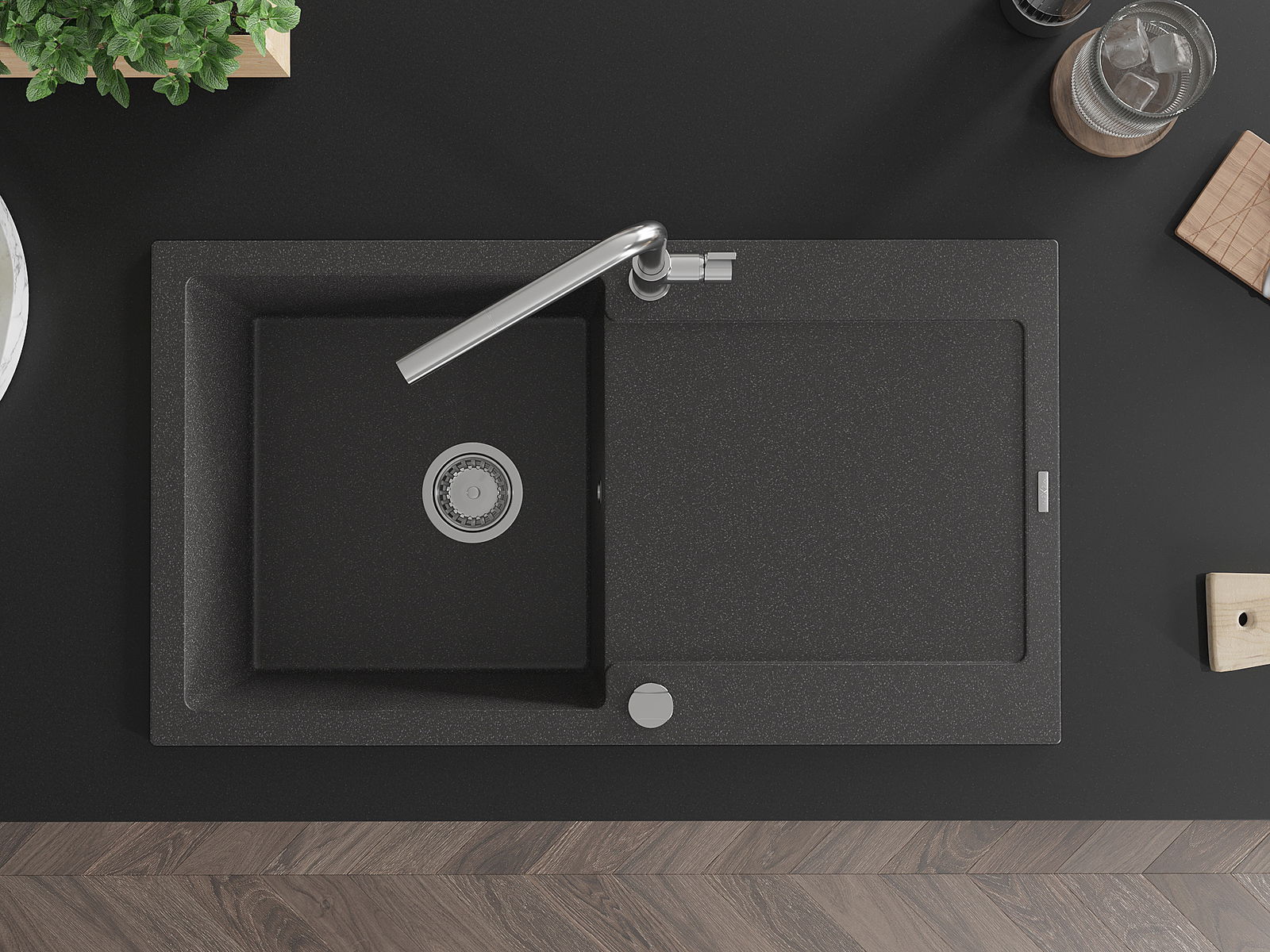 Het oppervlak van de spoelbak is zeer goed gehard en biedt een uitzonderlijke weerstand tegen mechanische beschadigingen en krassen. Het duurzame materiaal zorgt ervoor dat u jarenlang van zijn mooie uiterlijk kunt genieten.