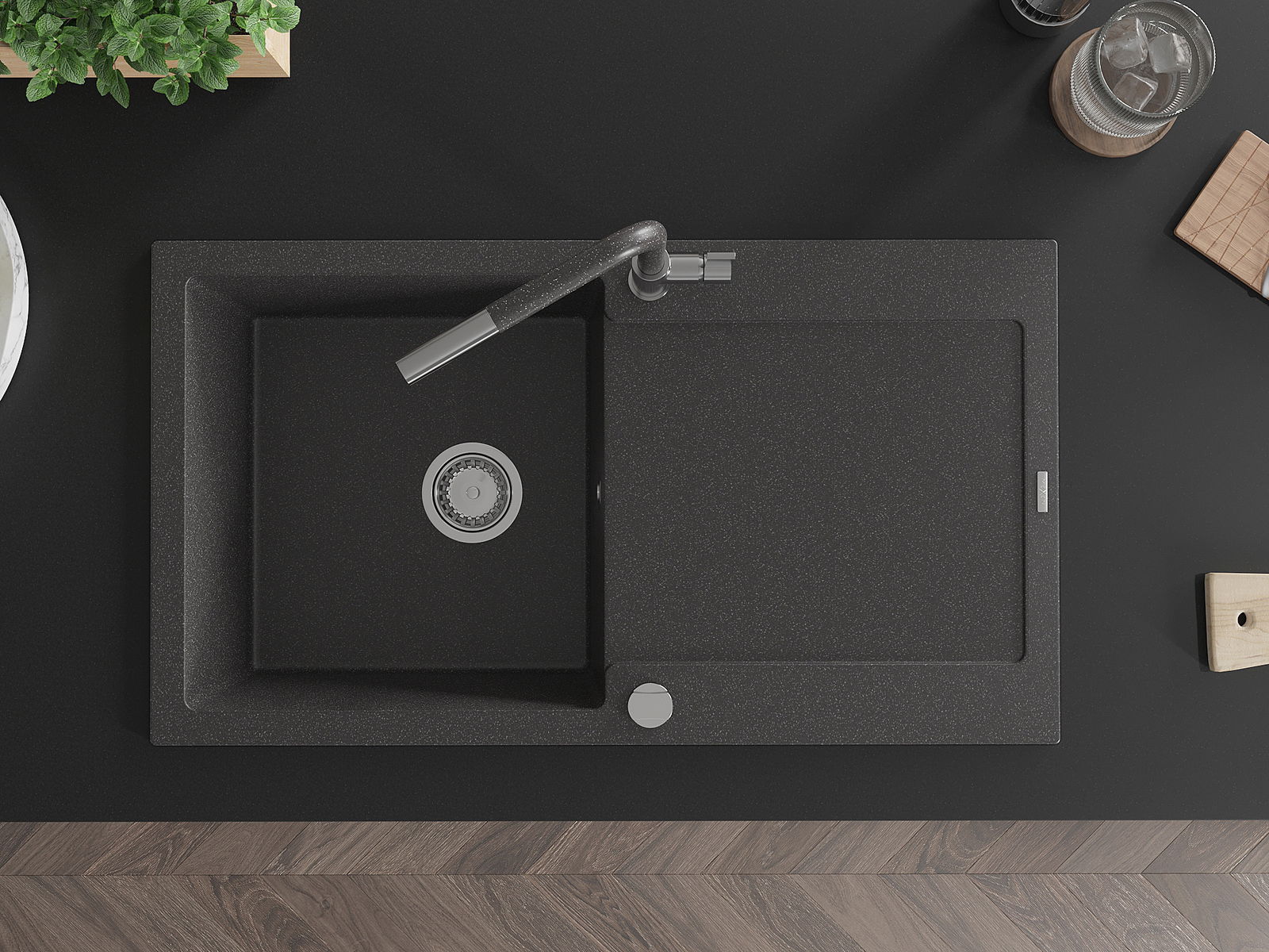 De gootsteen is gemaakt van hoogwaardig graniet. Het vormt een elegante en vooral praktische aanvulling op elke keuken, ongeacht de stijl. De hoge kwaliteit en duurzaamheid van graniet zorgen voor jarenlang gebruik.