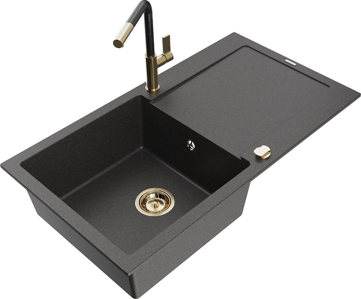Mexen Leo granieten gootsteen 1-compartiment met afdruiprek en keukenmengkraan Flora, zwart gespikkeld - 6501-76-670401-75-G
