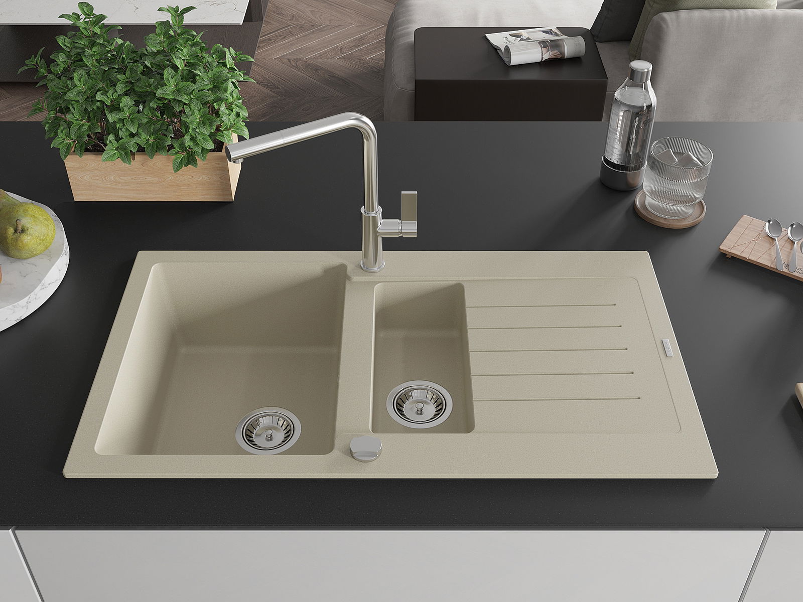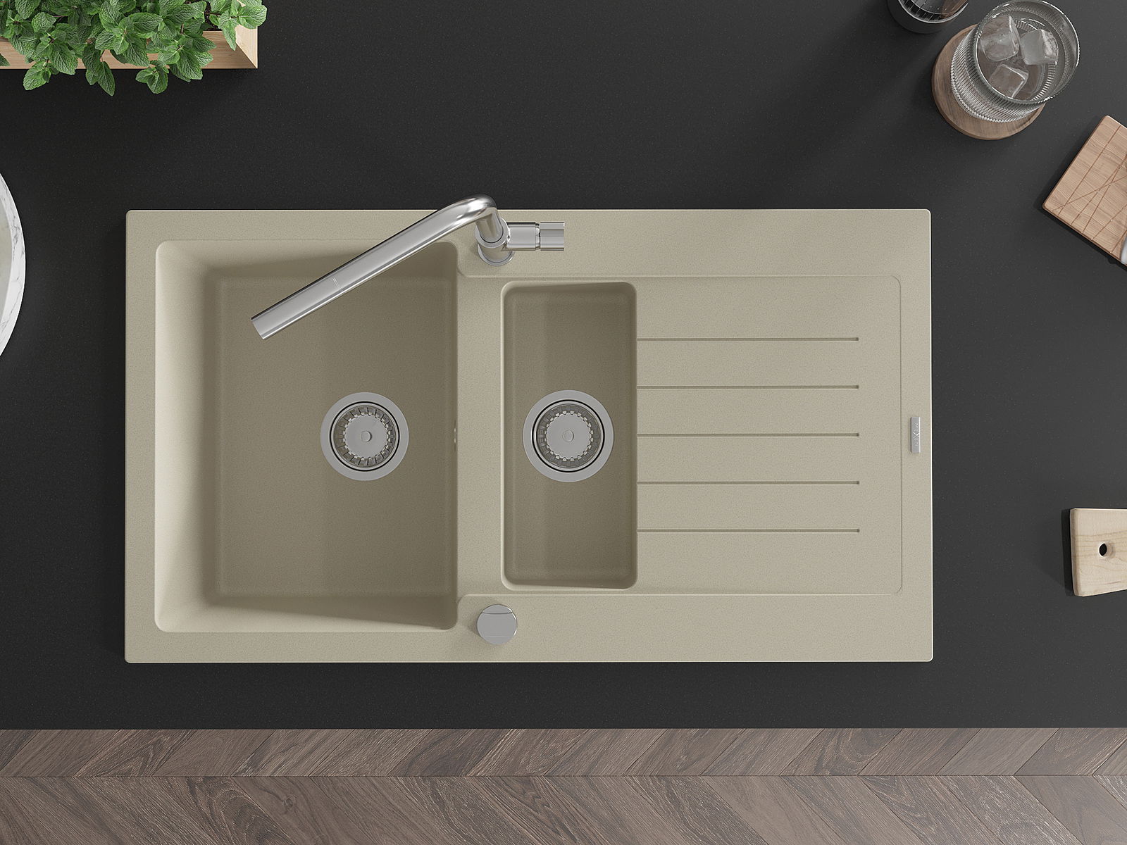 De gootsteen is gemaakt van hoogwaardig graniet. Het vormt een elegante en vooral praktische aanvulling op elke keuken, ongeacht de stijl. De hoge kwaliteit en duurzaamheid van graniet zorgen voor jarenlang gebruik.