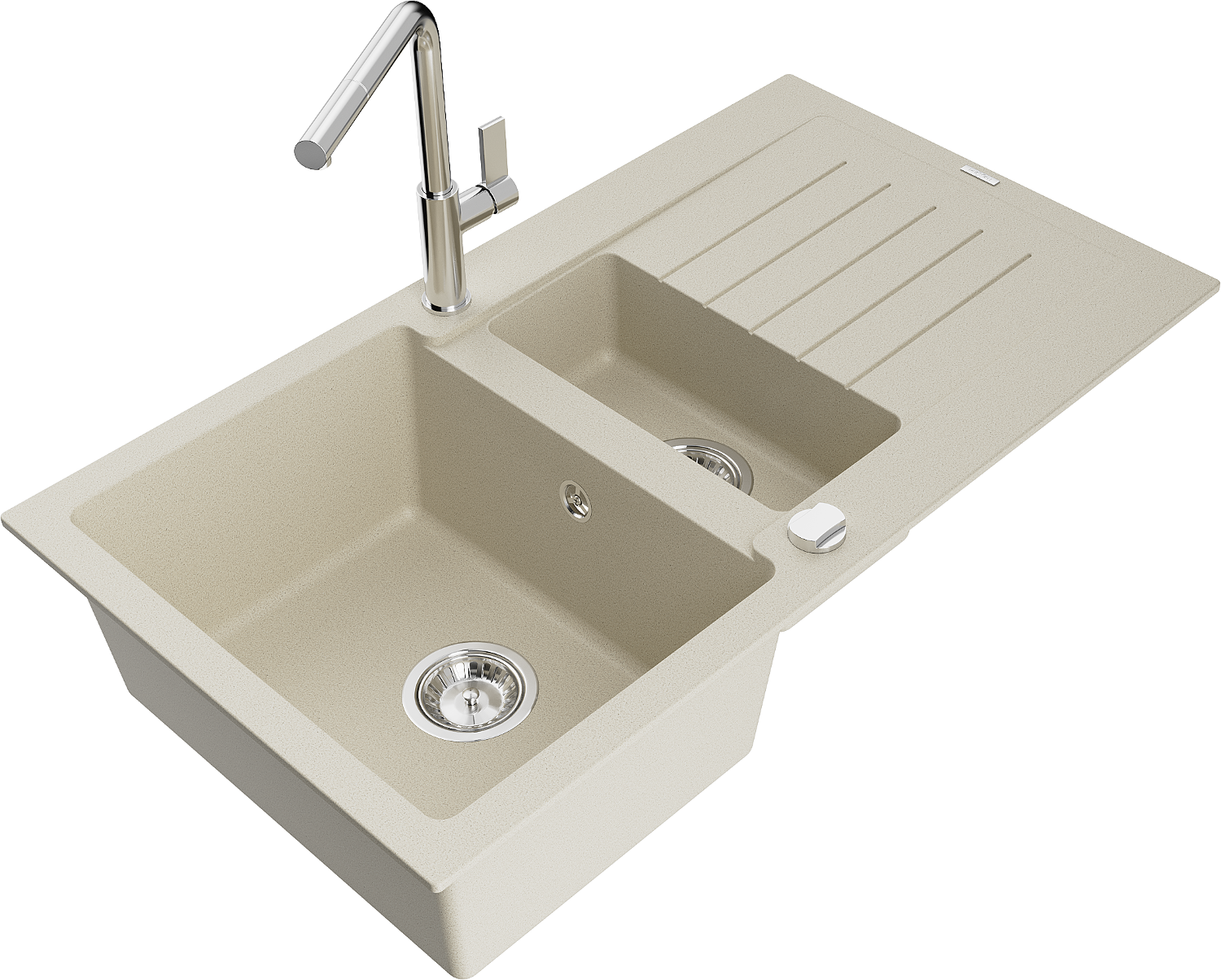 Mexen Matias granieten gootsteen 1,5-komoren met afdruiprek en keukenkraan Flora, beige - 6502-69-670401-00