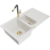 Mexen Matias granieten gootsteen 1,5-komors met afdruiprek en keukenmengkraan Flora, zwart met spikkels - 6502-76-670401-57-G