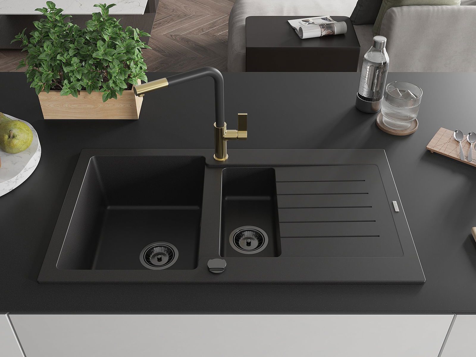 De gootsteen is gemaakt van hoogwaardig graniet. Het vormt een elegante en vooral praktische aanvulling op elke keuken, ongeacht de stijl. De hoge kwaliteit en duurzaamheid van graniet zorgen voor jarenlang gebruik.