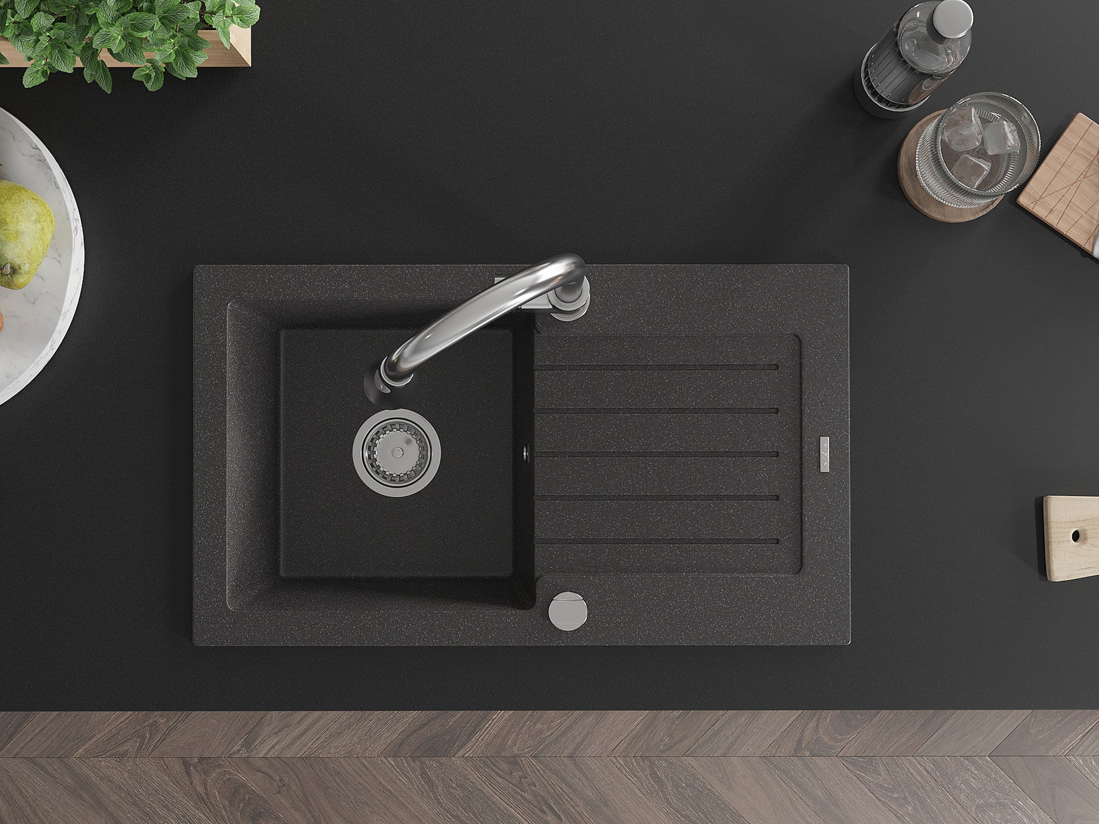 De gootsteen is gemaakt van hoogwaardig graniet. Het vormt een elegante en vooral praktische aanvulling op elke keuken, ongeacht de stijl. De hoge kwaliteit en duurzaamheid van graniet zorgen voor jarenlang gebruik.